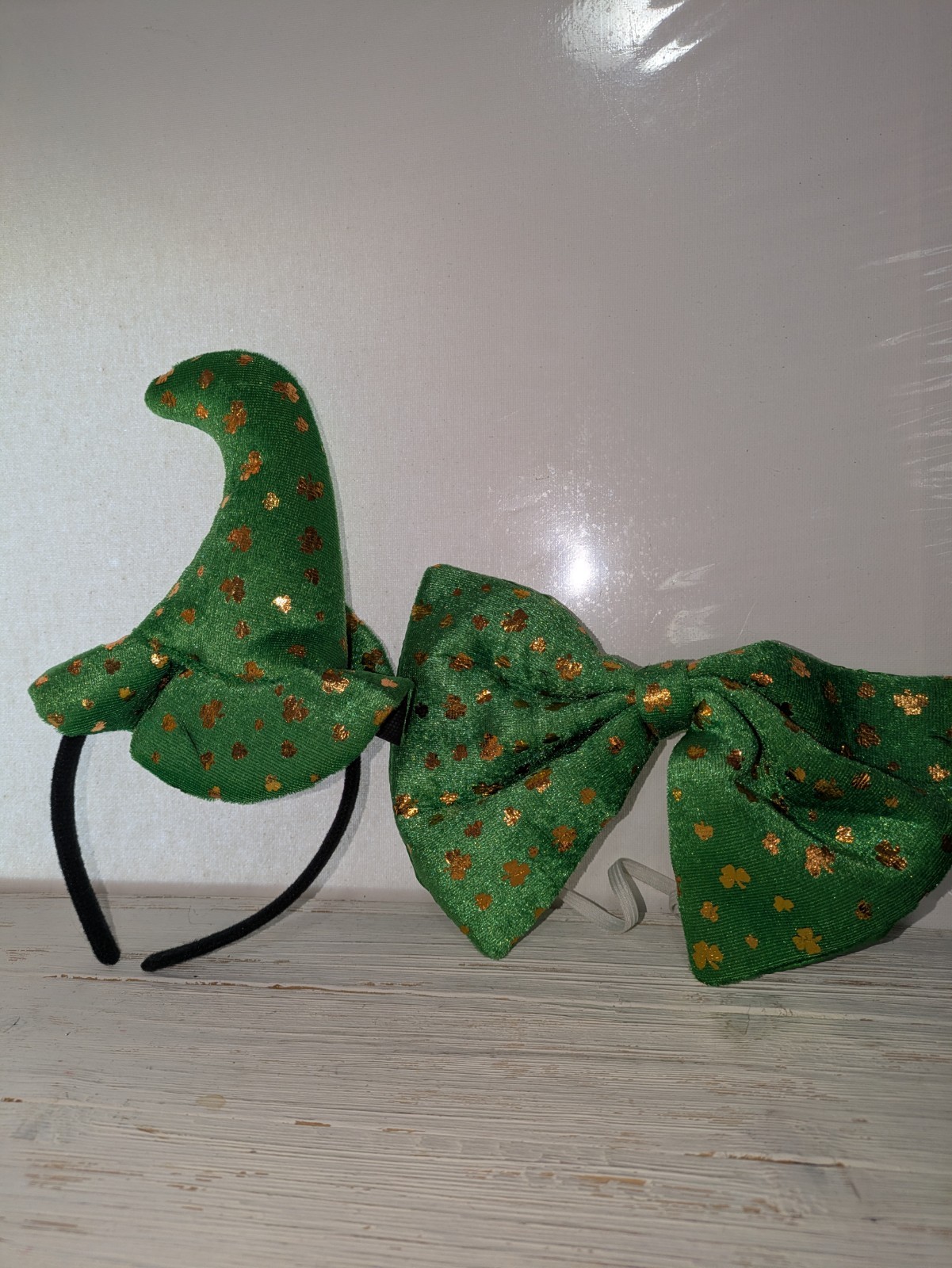 как выглядит st patricks day felt shamrock hat headband and large bow tie Irish accessories фото