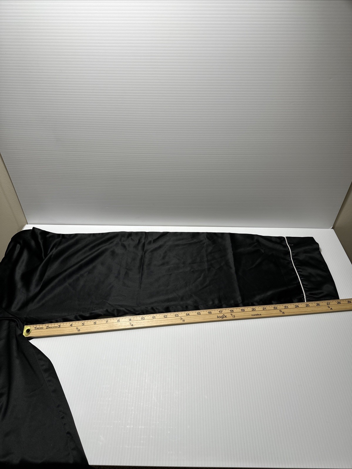 Natori Black Satin Pajama Set Button Down Long Sleeve/Pants White Piping Medium