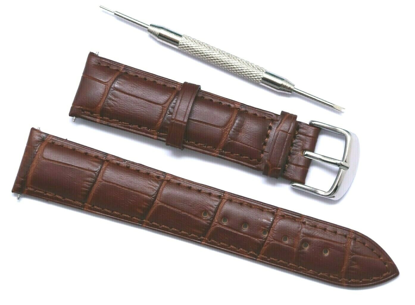 как выглядит 20 22 24mm Brown Crocodile Grain Leather Watch Band Strap With Spring Bar Tool фото