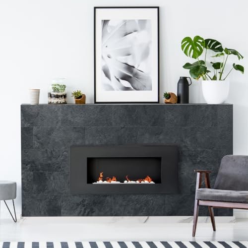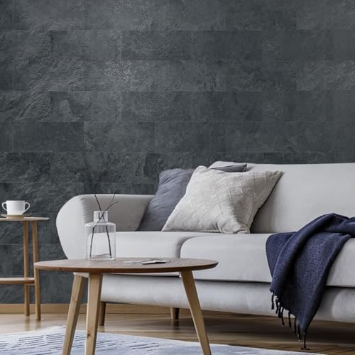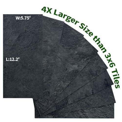 6 x 12 Peel and Stick Backsplash Wall Tiles, PVC Faux Stone 20 Black Slate