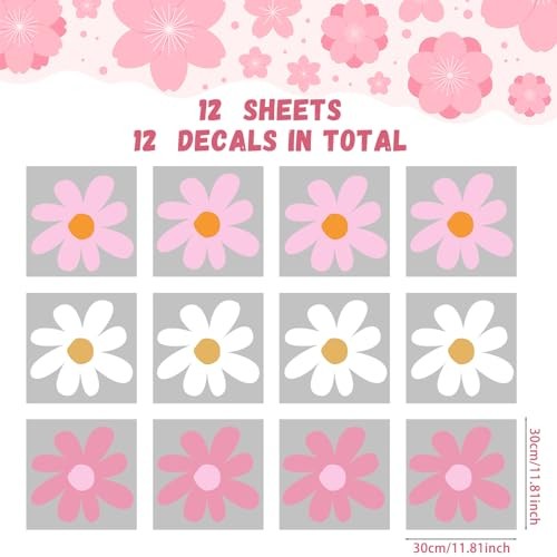 12 Sheets Daisy Wall Decal Flower Wall Sticker Classic Color Delicate Style
