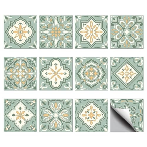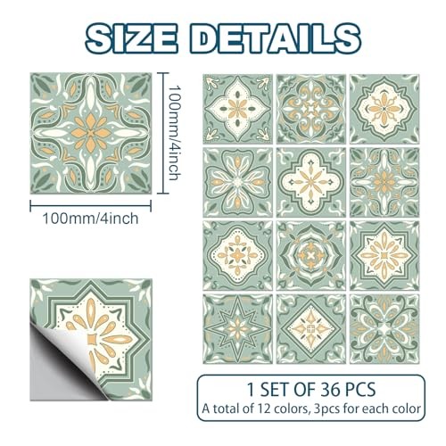 36PCS Bohemian Tile Stickers 4x4 inch Wall Stickers Waterproof Green Bohemian