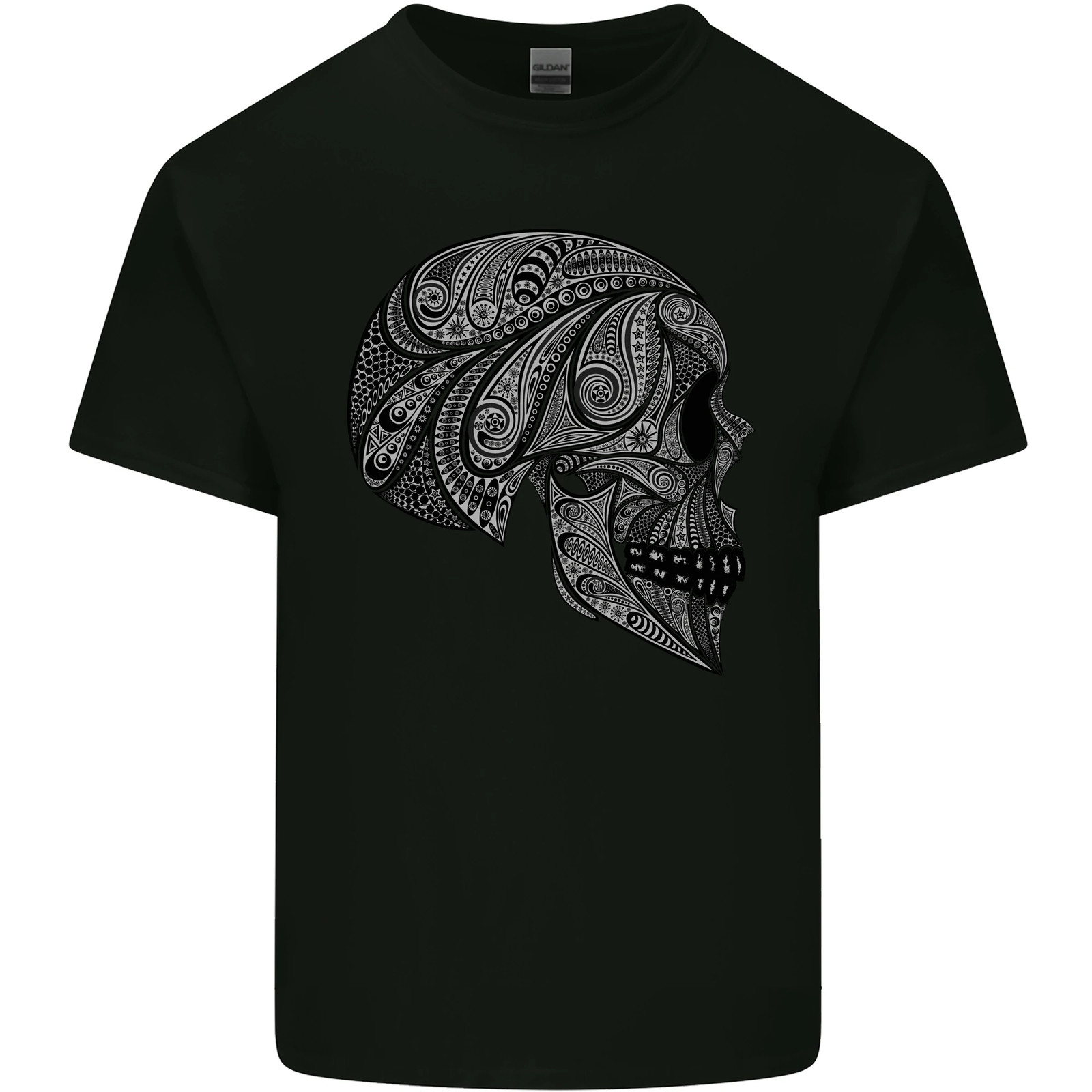 Mandala Skull Gothic Biker Motorbike Mens Cotton T-Shirt Tee Top