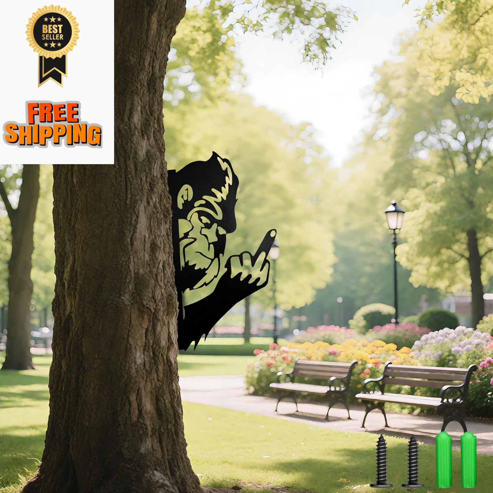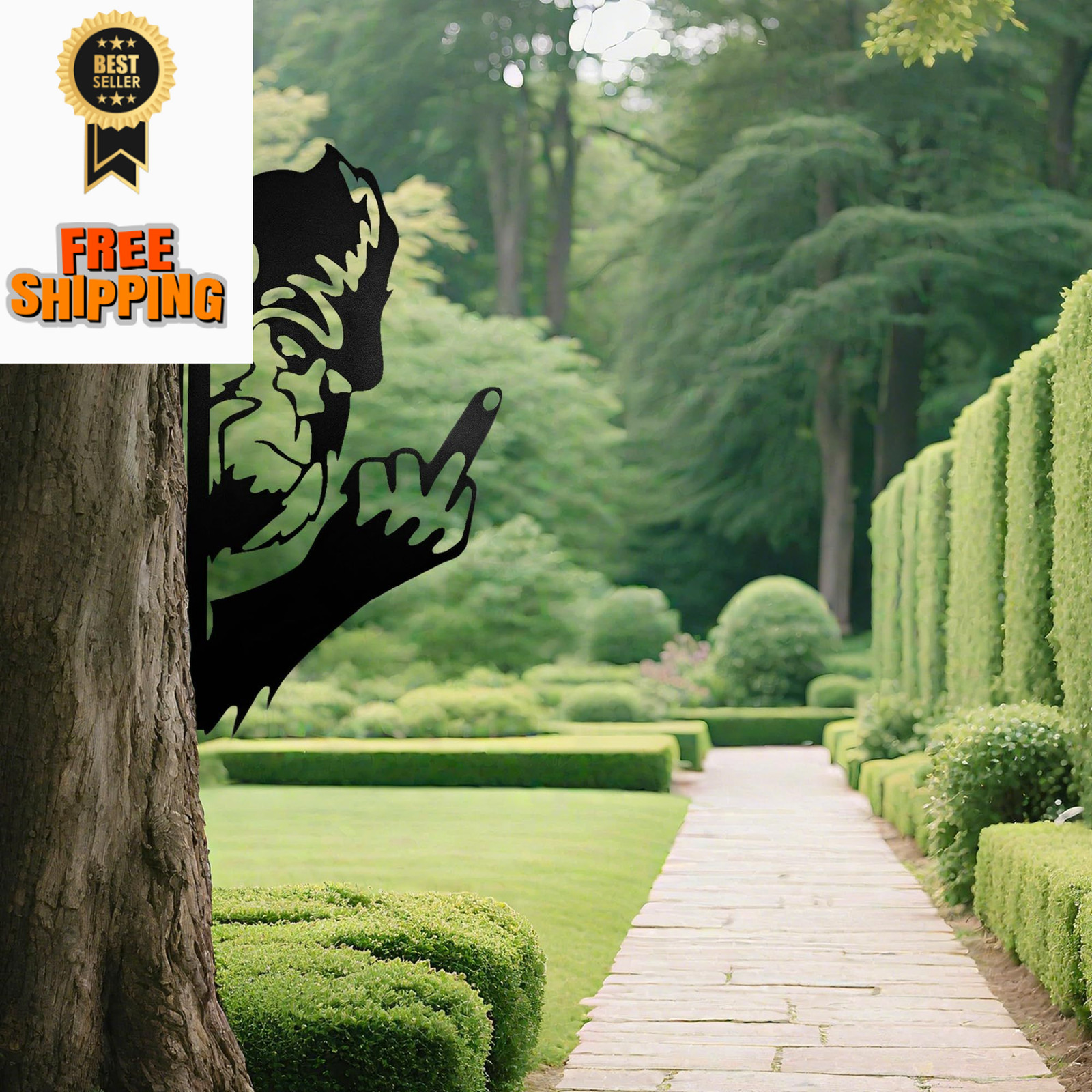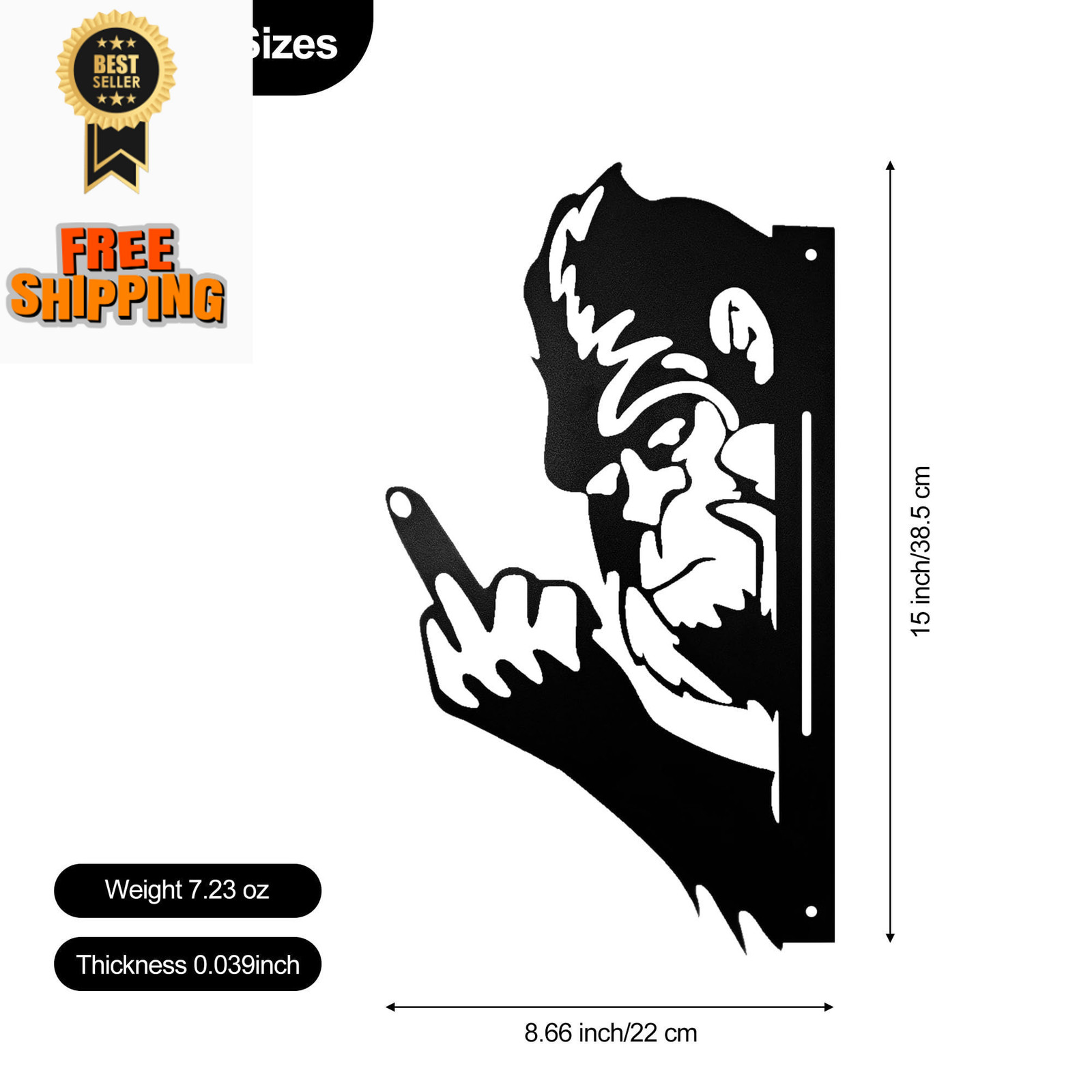 Bigfoot Middle Finger Metal Yard Sign Funny 8.66 inches x 15 inches, black