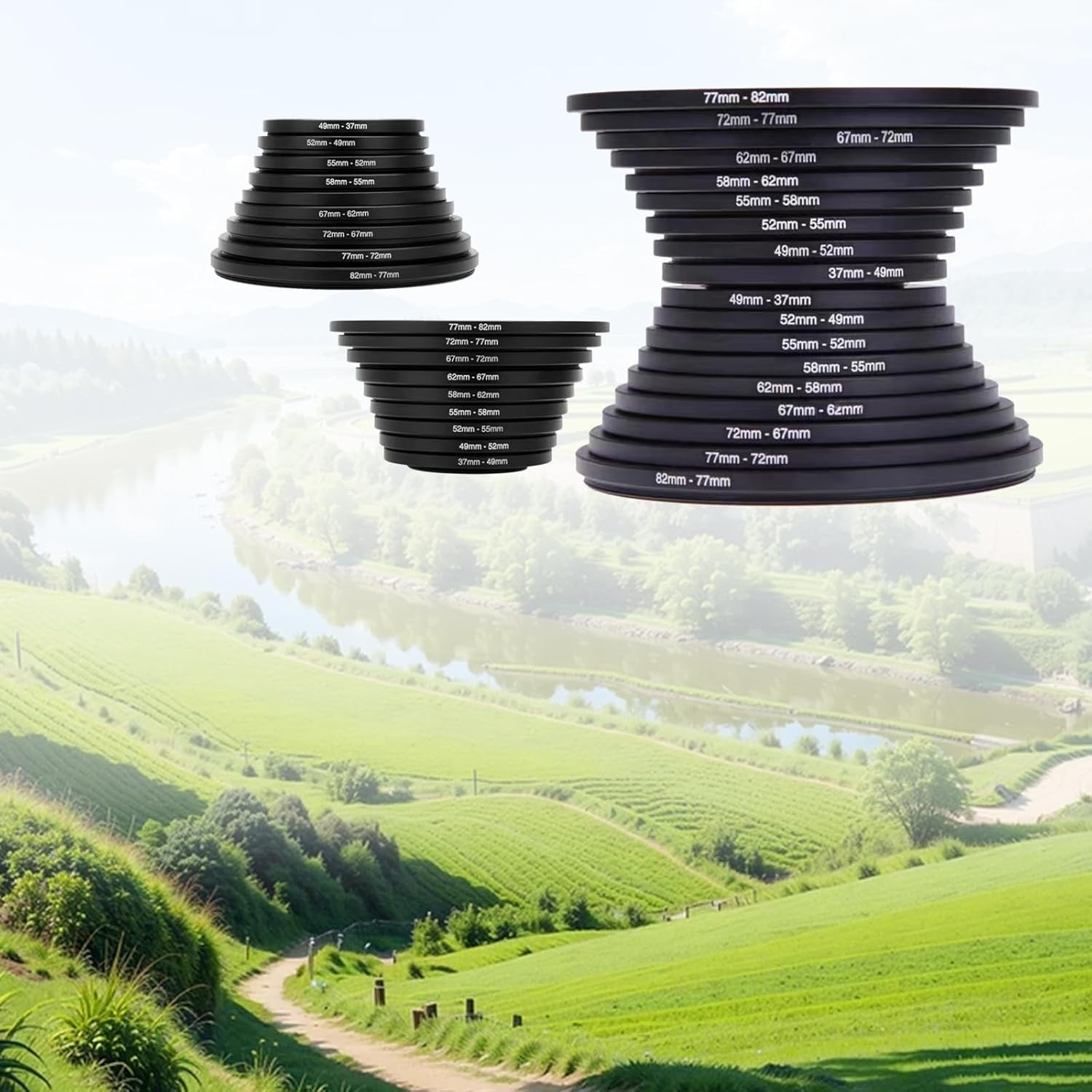 18Pcs Filter Ring Adapter Set, 37-82mm Metal Step Up/Down Rings For SLR Camera
