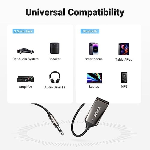 Aux to Bluetooth 6.0 Adapter 3.5mm Bluetooth Receiver for Car USB Dark Grey