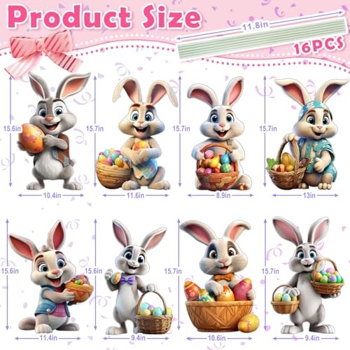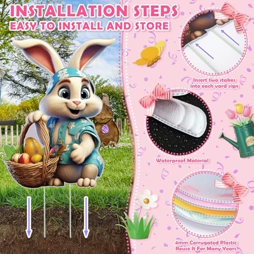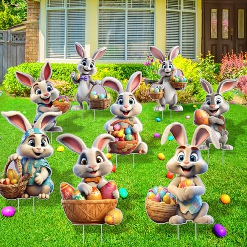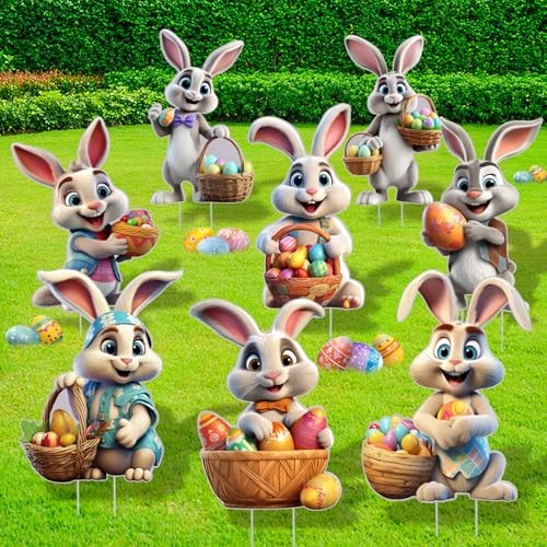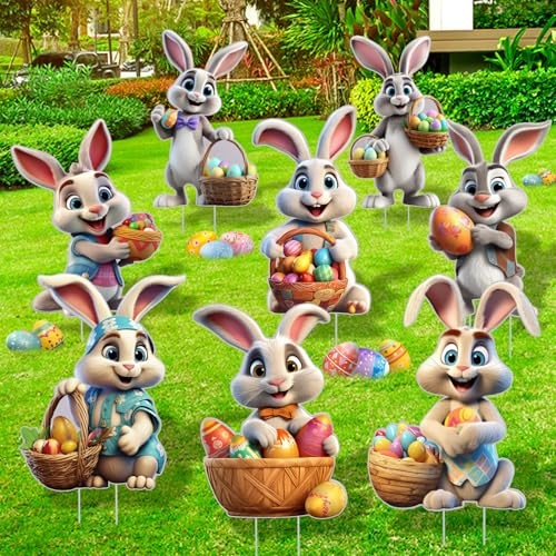 8 Pcs Easter Bunny Yard Decorations Outdoor, Bunnies Yard Signs with Stake,