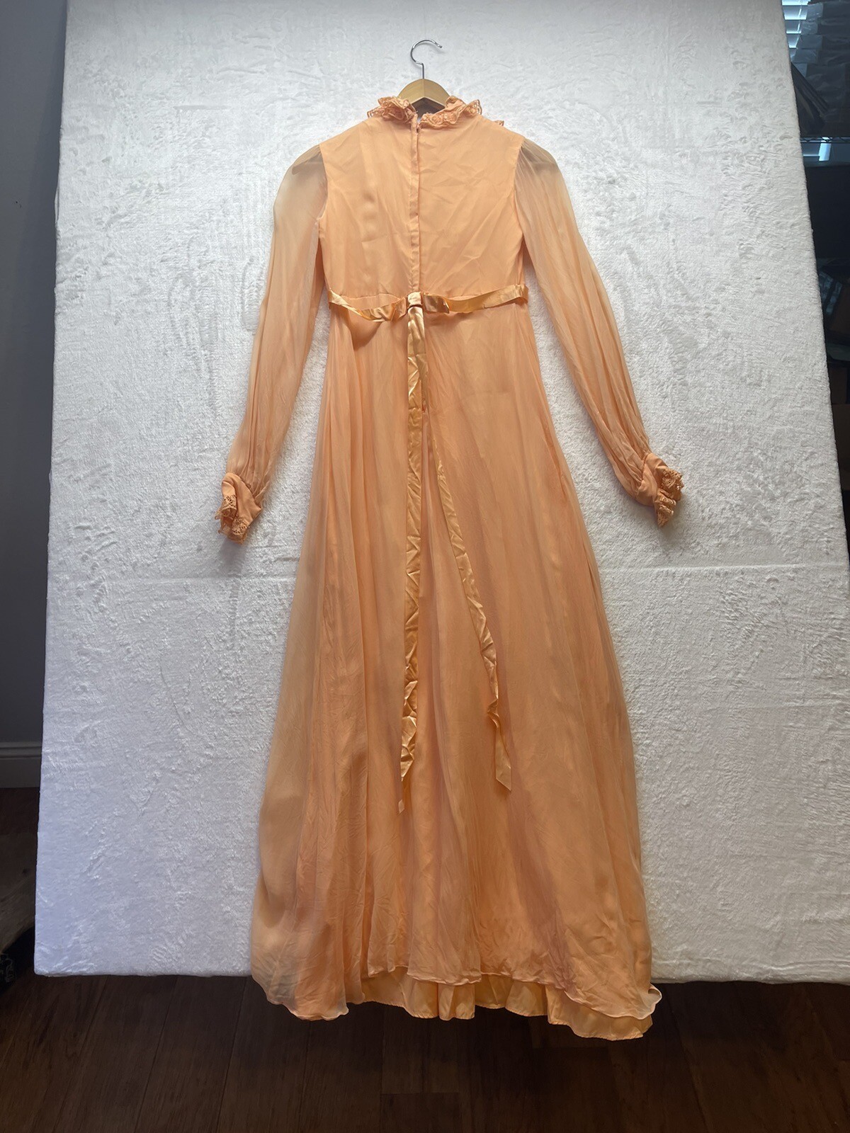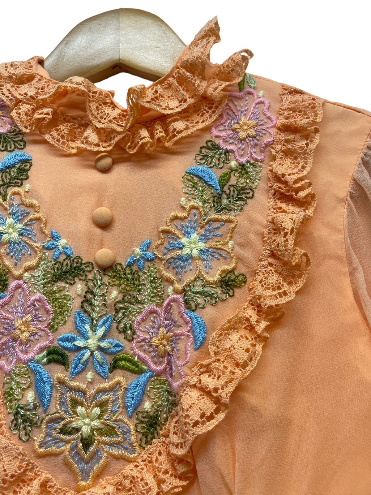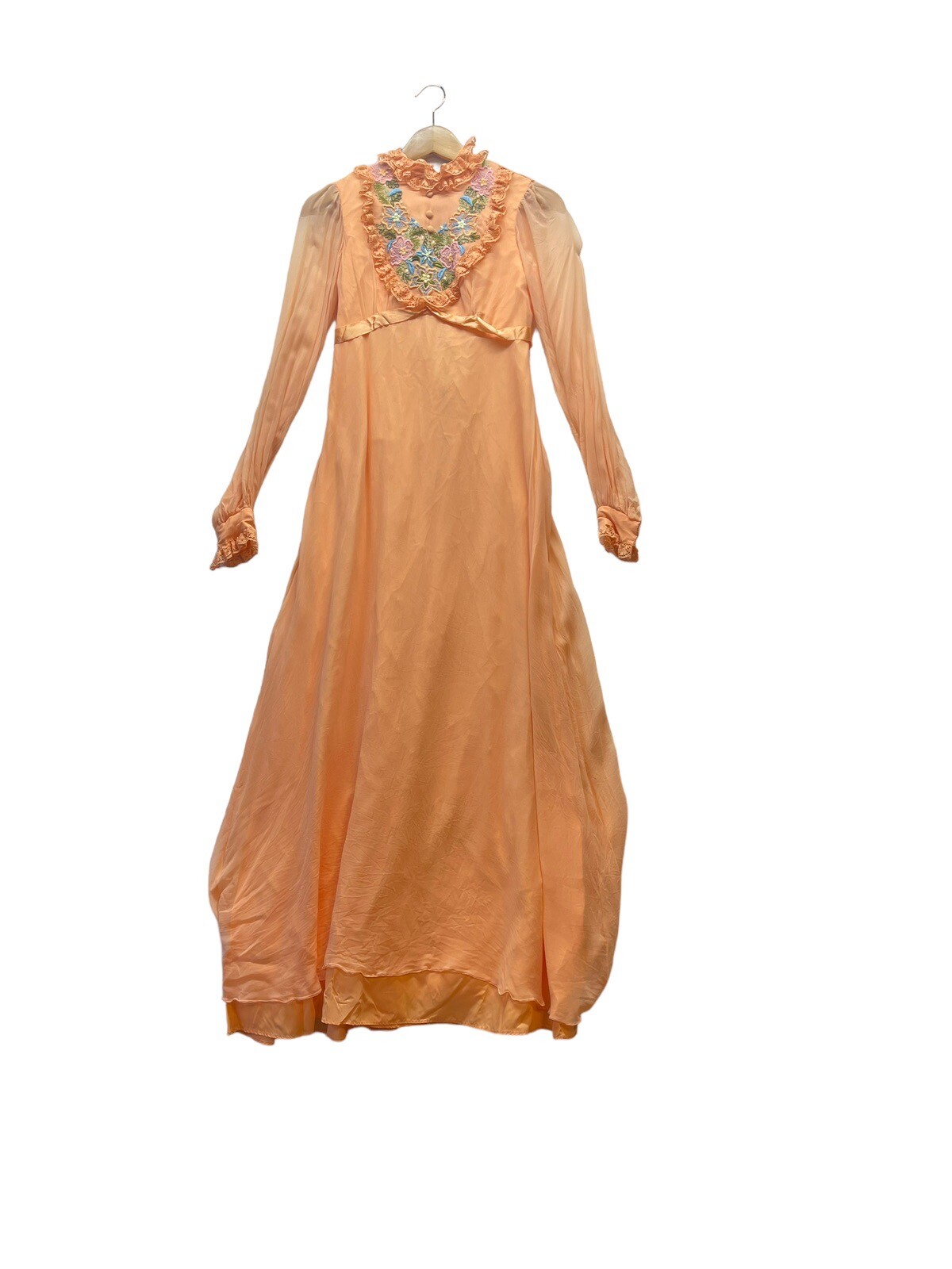 как выглядит VINTAGE Orange Peach Floral Embroidered 70s MAXI GOWN DRESS See Measurements Vtg фото