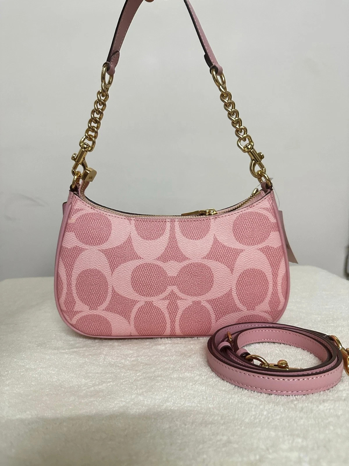 как выглядит Coach Teri Shoulder Bag Signature Canvas CAL51 Powder Pink outlet Free Shipping фото