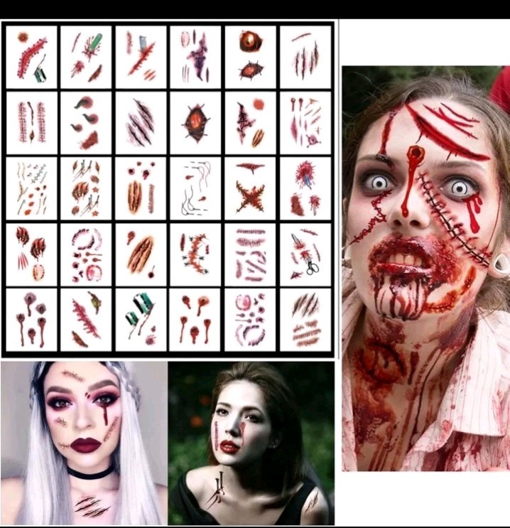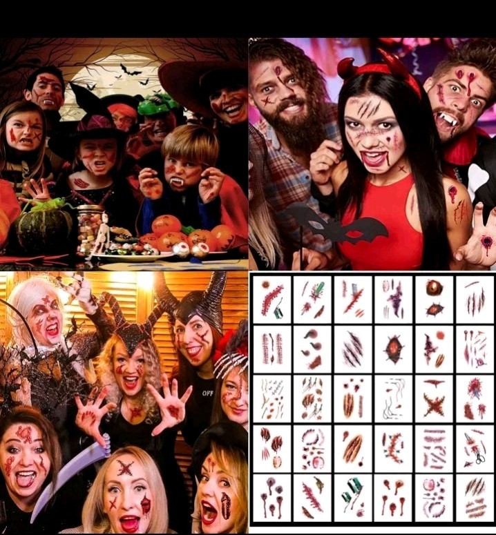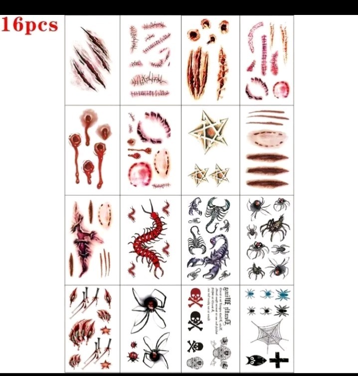 16 Sheets Halloween Temporary Tattoos, Tattoos for Halloween Scars, Ha
