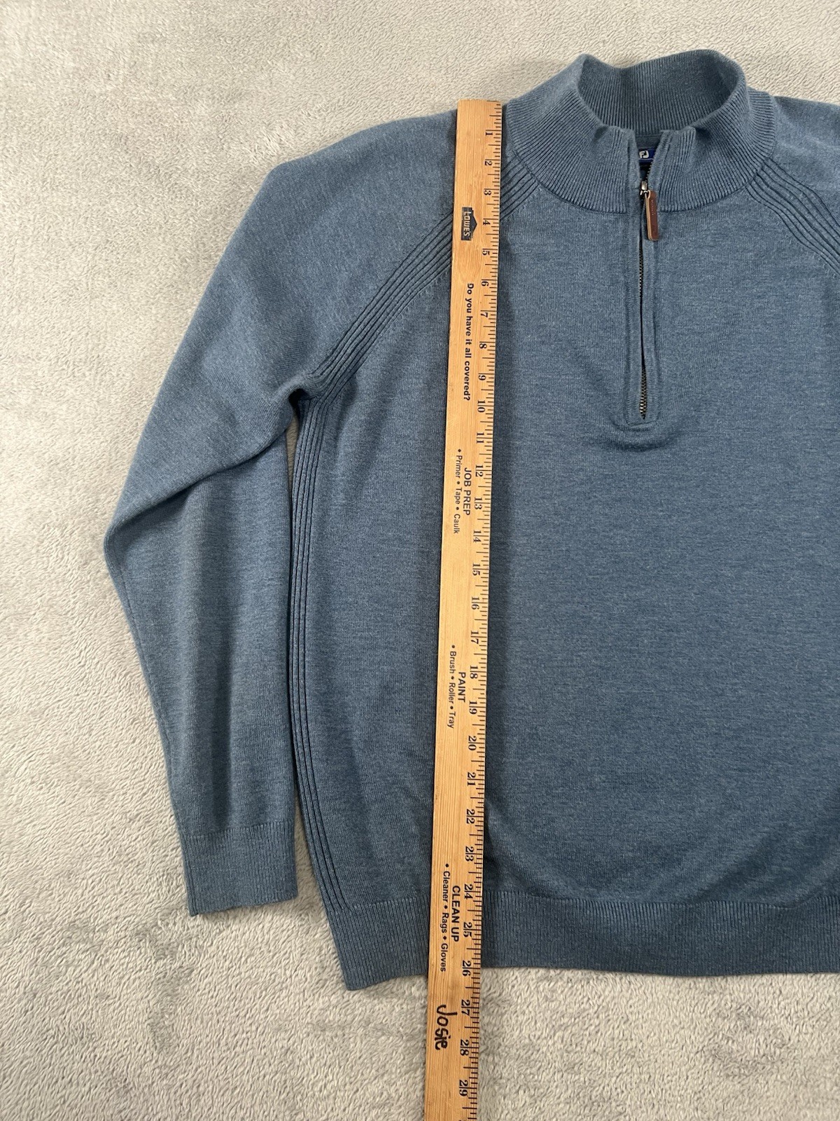 как выглядит FootJoy Sweater Mens Size Large Blue DriRelease Wool Blend 1/4 Zip Pullover Golf фото