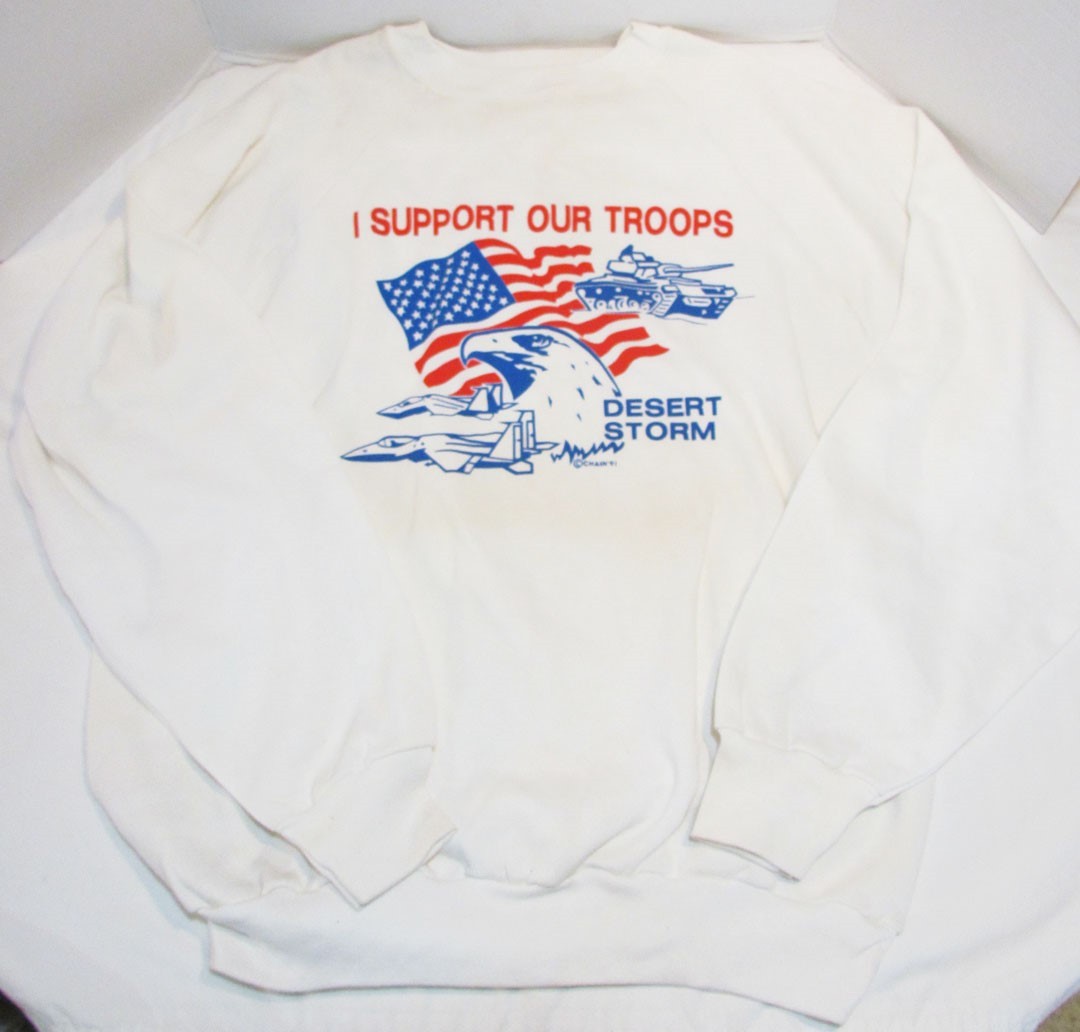 как выглядит SUPPORT OUR TROOPS DESERT STORM 1991 CREWNECK SWEATSHIRT VINTAGE MILLER XXL 2X фото