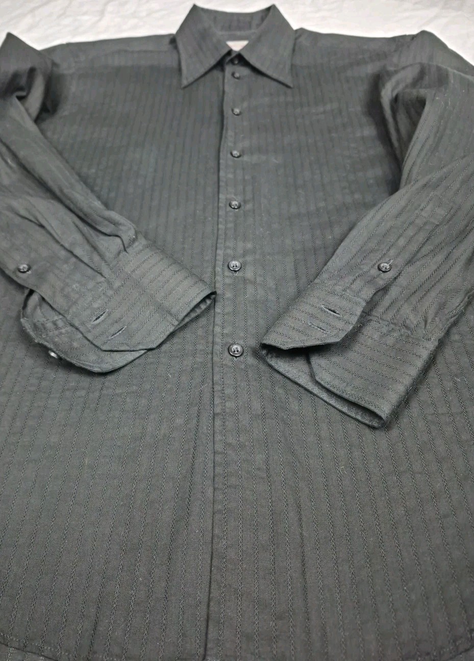 Versace Classic Black Cotton Button Down Shirt Mens L 16.5 Textured Criss Cross