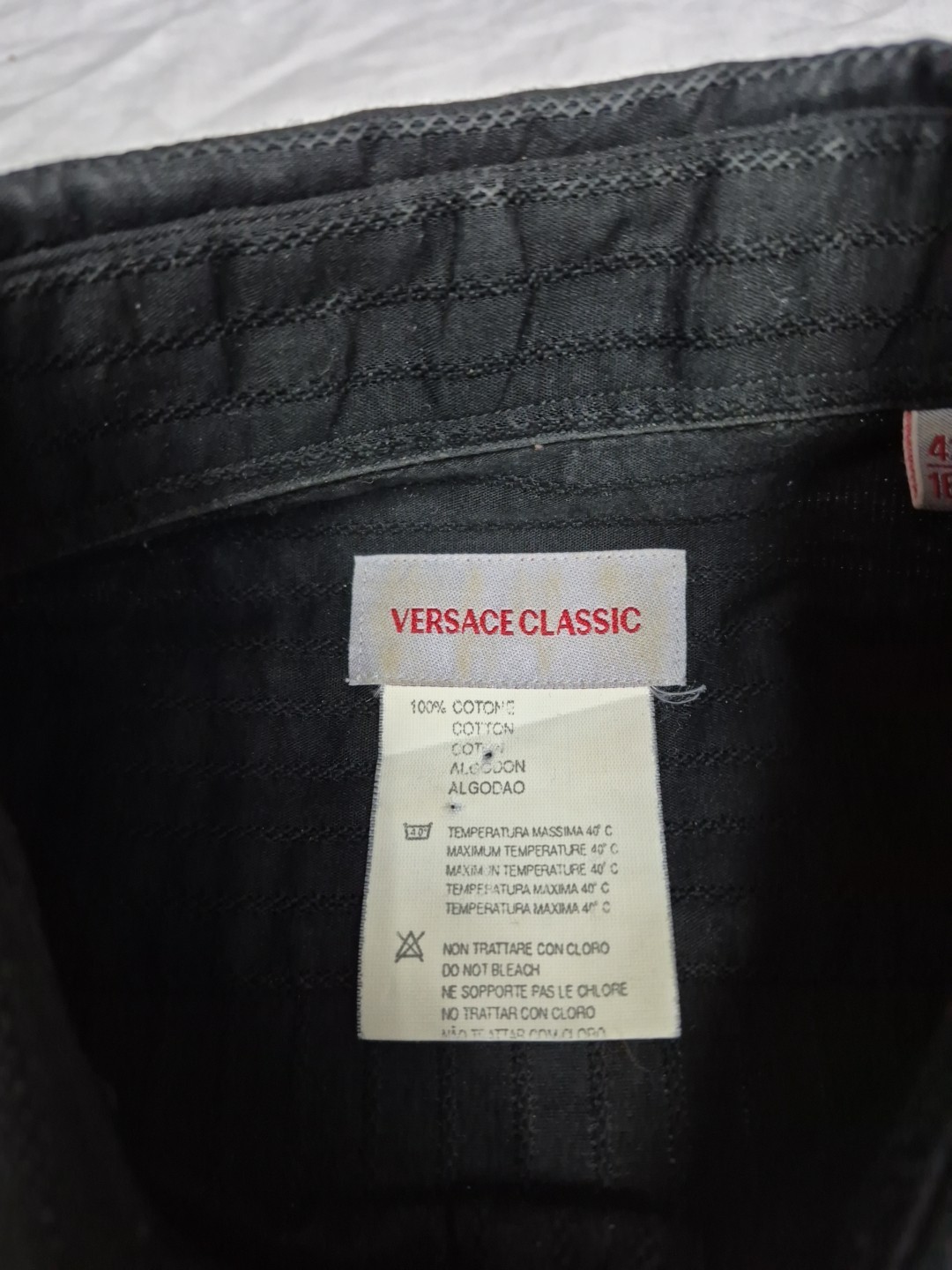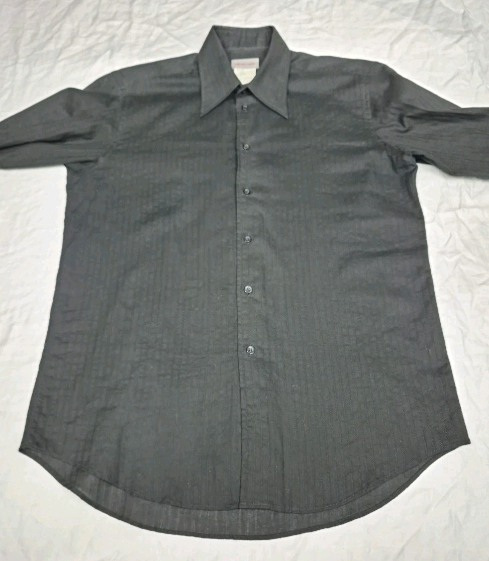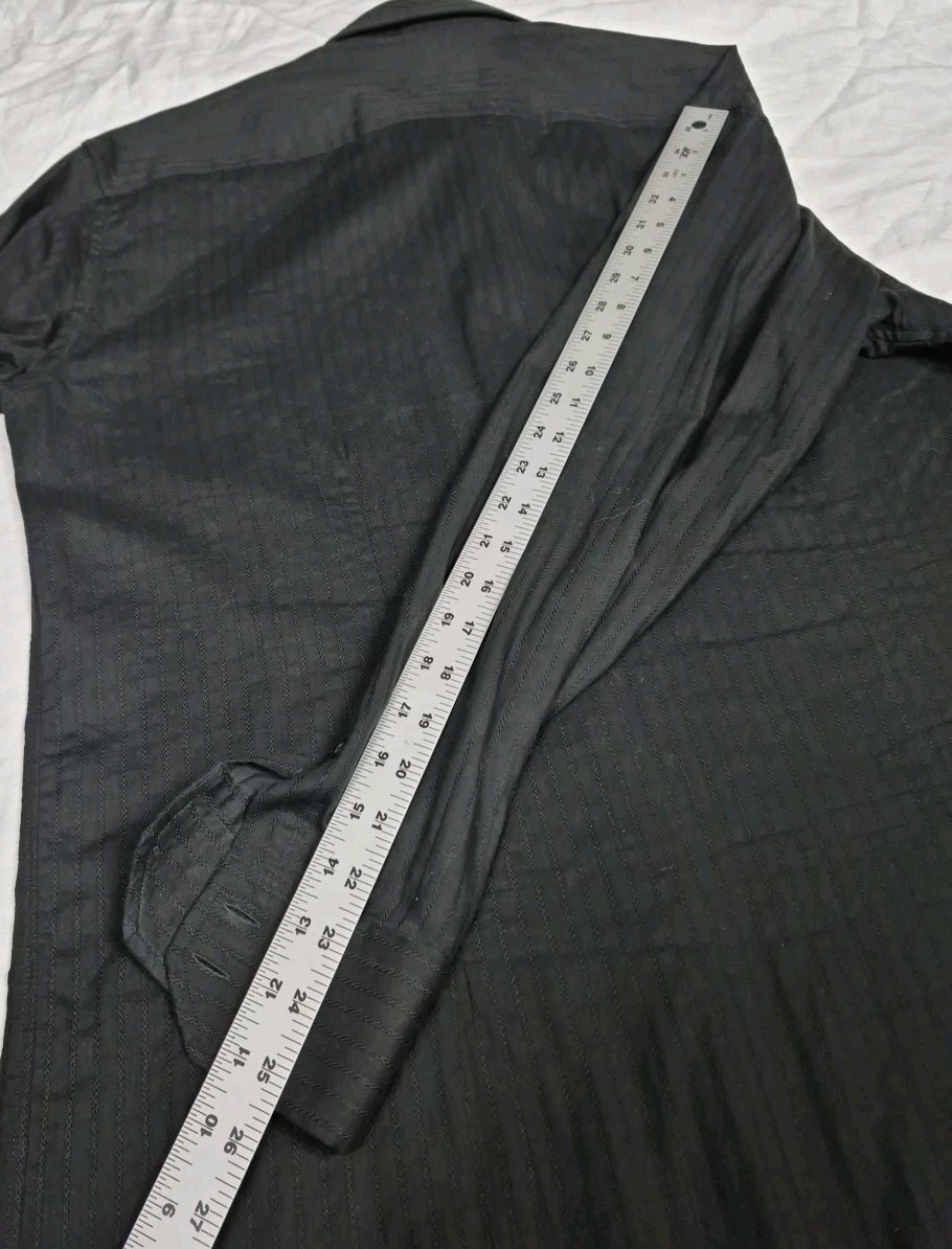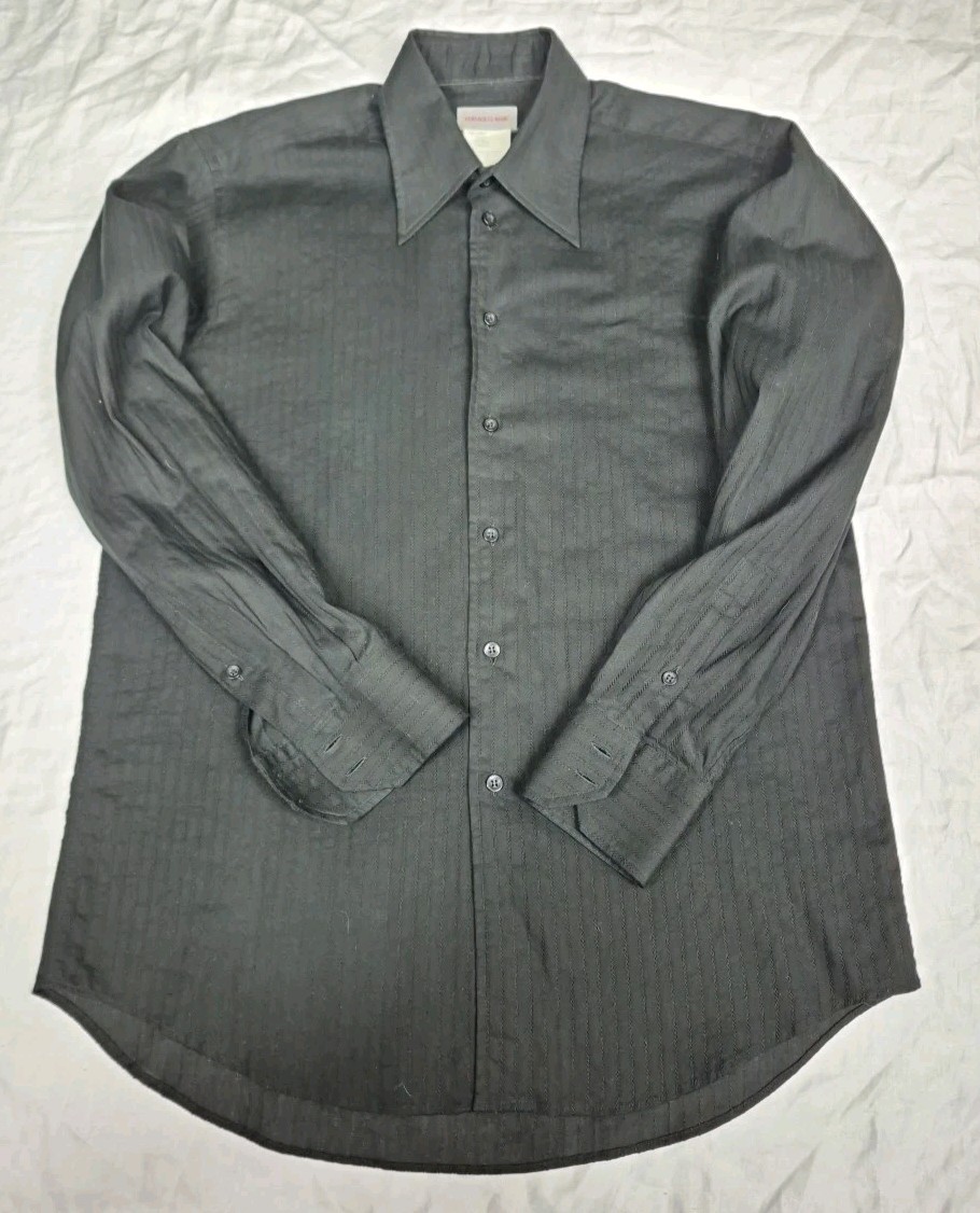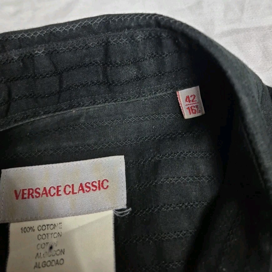 как выглядит Versace Classic Black Cotton Button Down Shirt Mens L 16.5 Textured Criss Cross фото