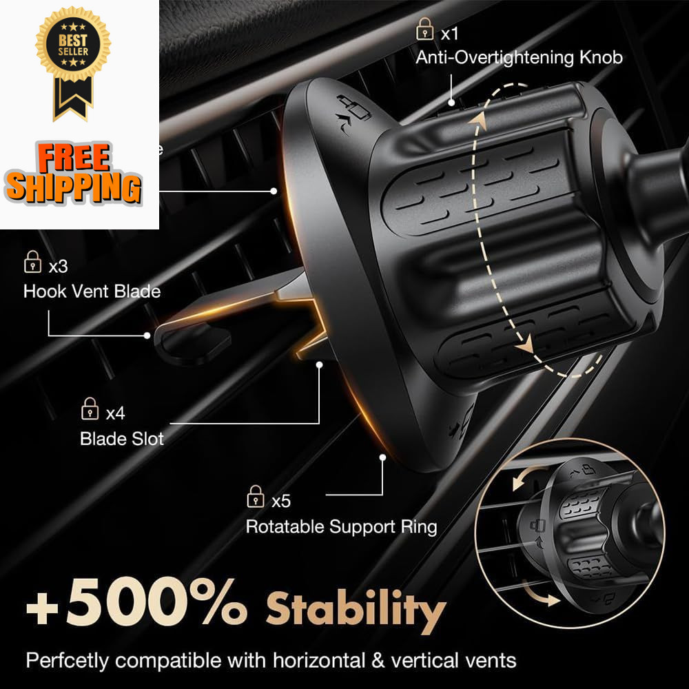 GPS Holder for Car Air Vent Mount with Metal Hook and 17mm Small, Black