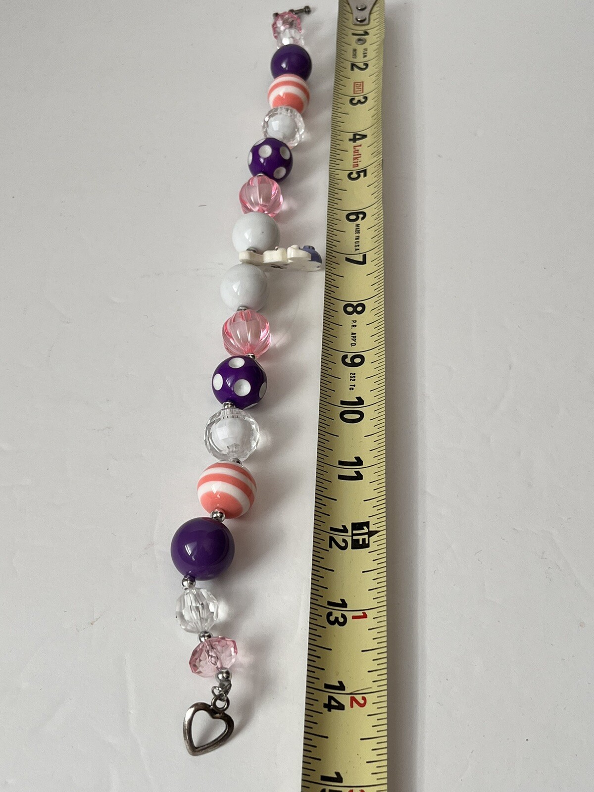 как выглядит Easter Bunny Chunky Bubblegum Purple Pink White Beaded Necklace Jewelry фото