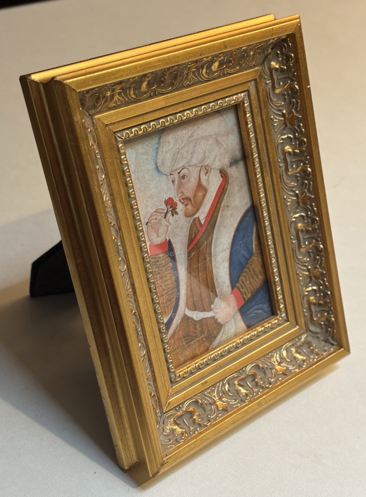 Vintage 4x6 Ornate Gold Picture Frame W/ Print Of Sultan Mehmed