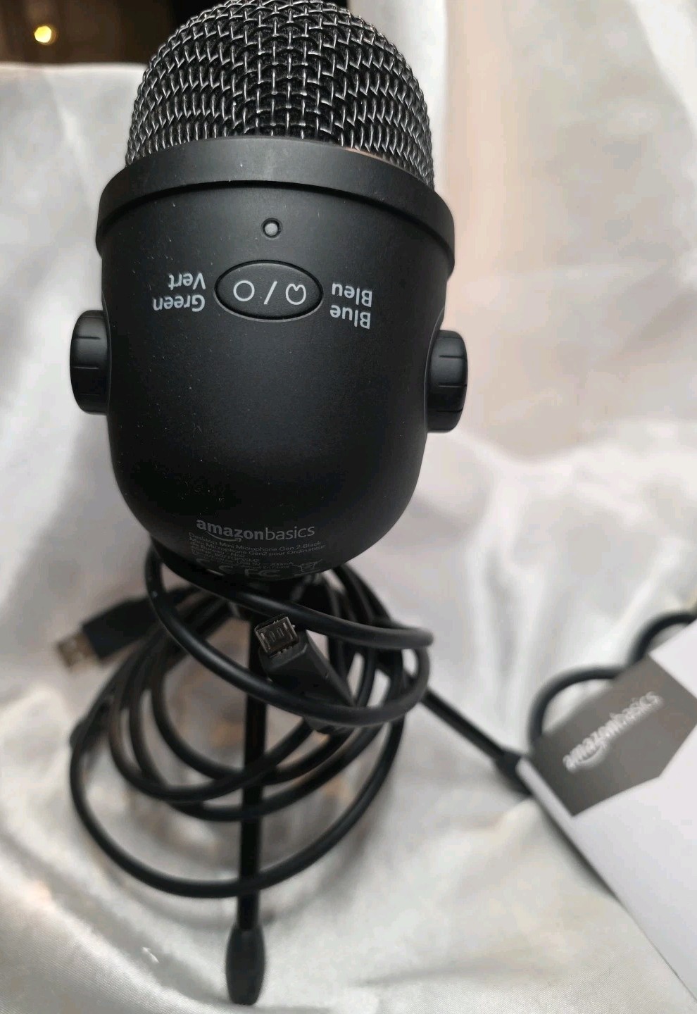 как выглядит AmazonBasics Desktop Mini Mic Microphone Gen2 with Tripod Cords - Black фото