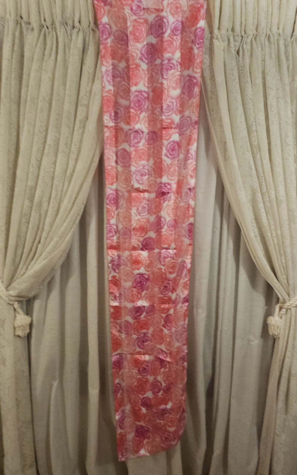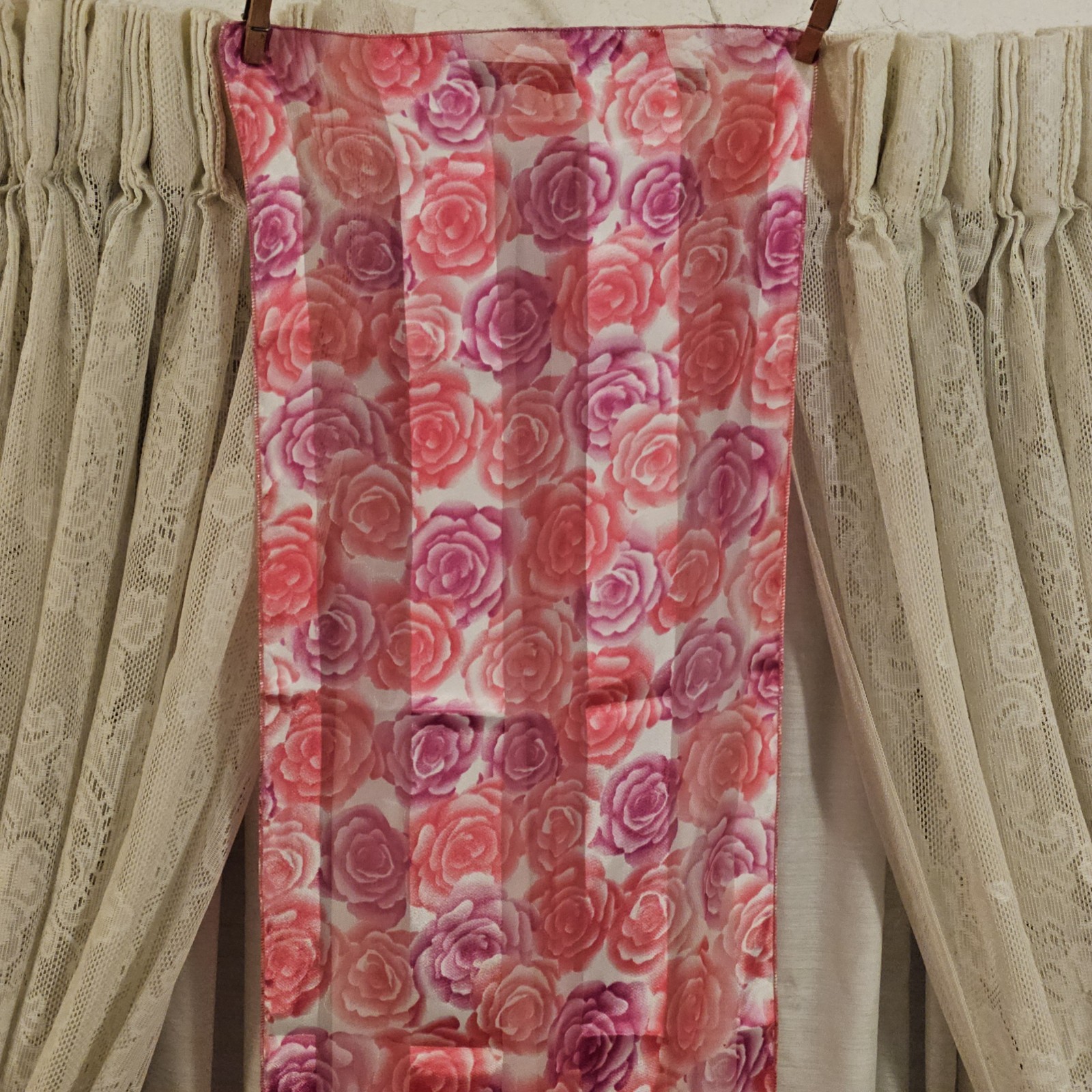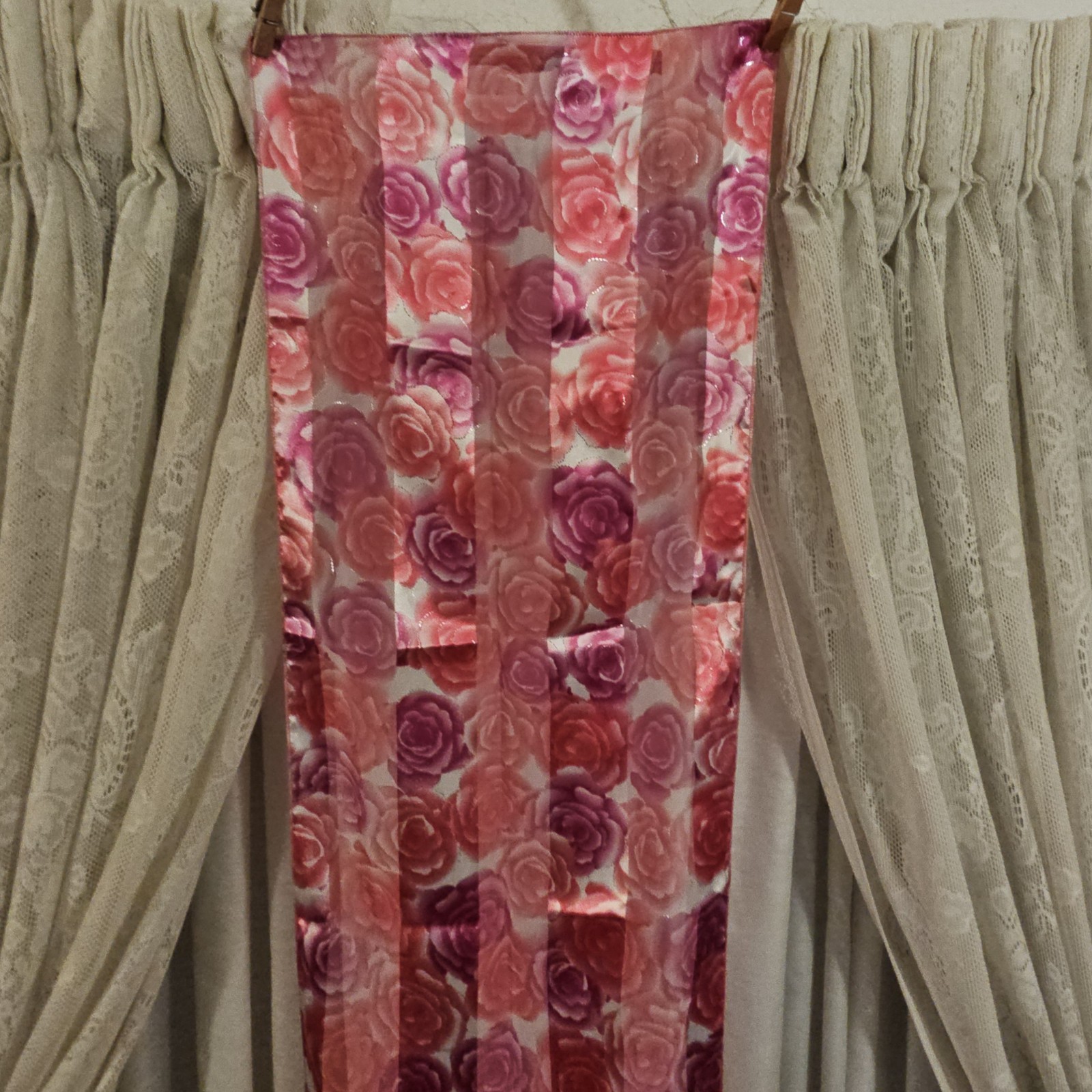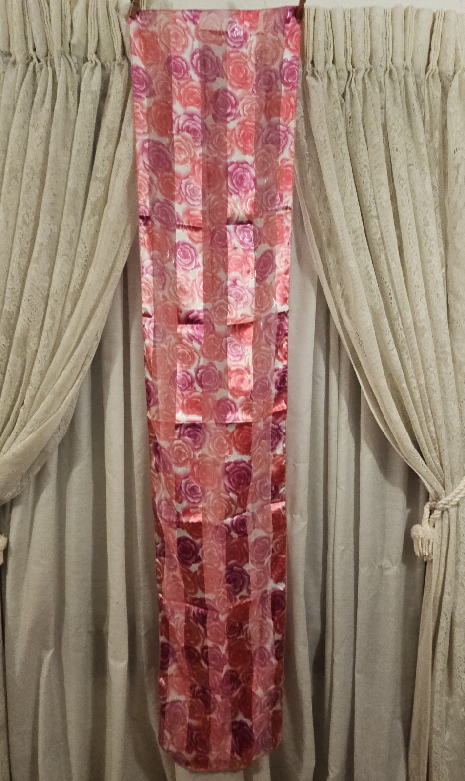 как выглядит Vintage Pink Purple Roses Silver Brocade Satin Sheer 58 1/2" x 12 1/2" Scarf фото