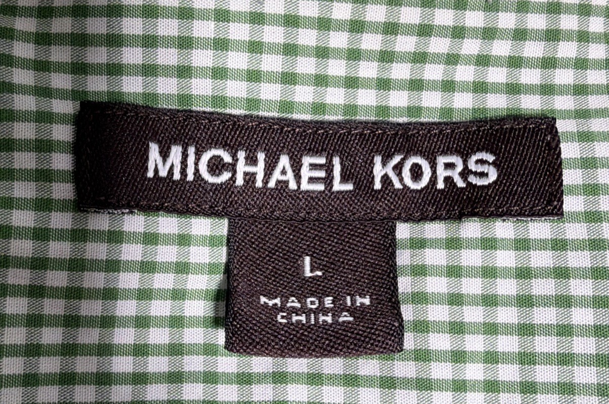 MICHAEL KORS DESIGNER BUTTON UP LONG SLEEVE SHIRT Mens L Gingham Check Preppy