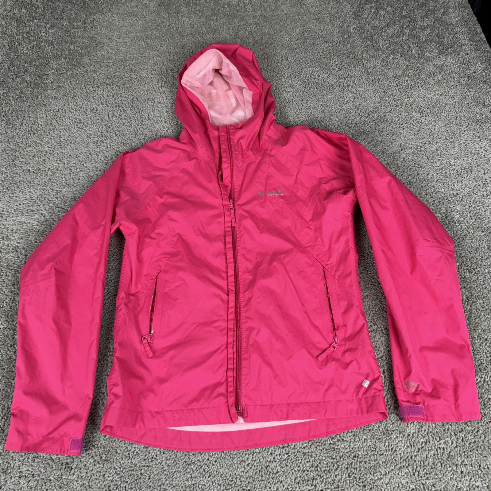 как выглядит Columbia Jacket Girls 18/20 Pink Hooded Titanium Omni-Tech Windbreaker Full Zip фото