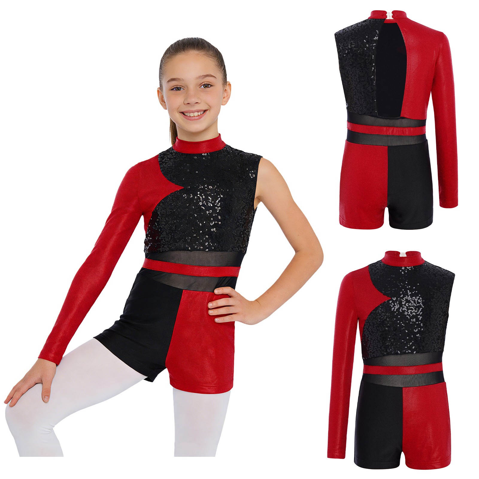 как выглядит Kids Girls Leotard Cutout Dancewear Shiny Jumpsuit Outfit Asymmetrical Costume фото