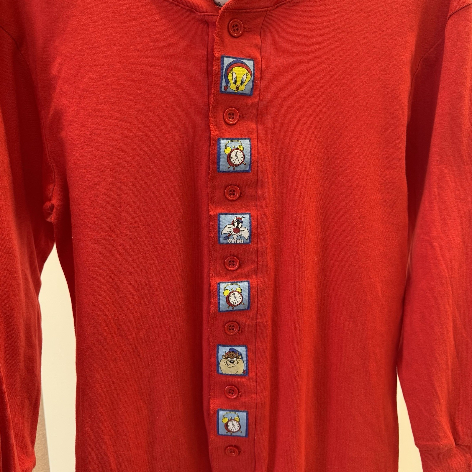 Looney Tunes Red One Piece Pajamas Wake Up Call Tweety Bugs Bunny Size L 1998