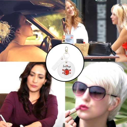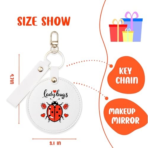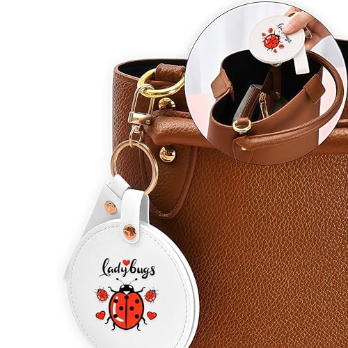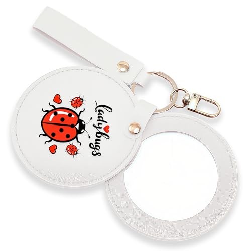 Small Makeup Mirror Keychain, Compact Mirror for Purse,Leather Small Ladybugs