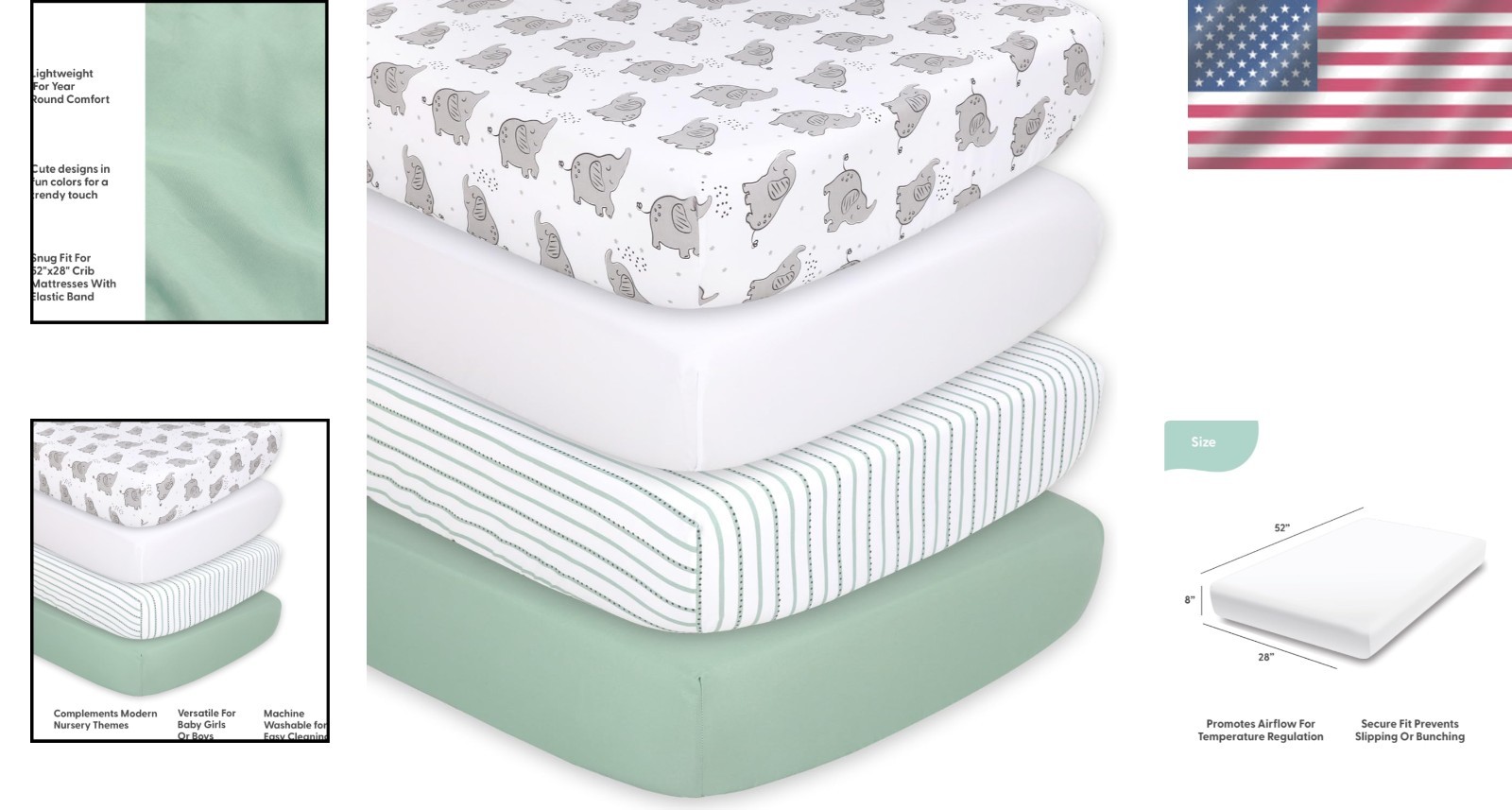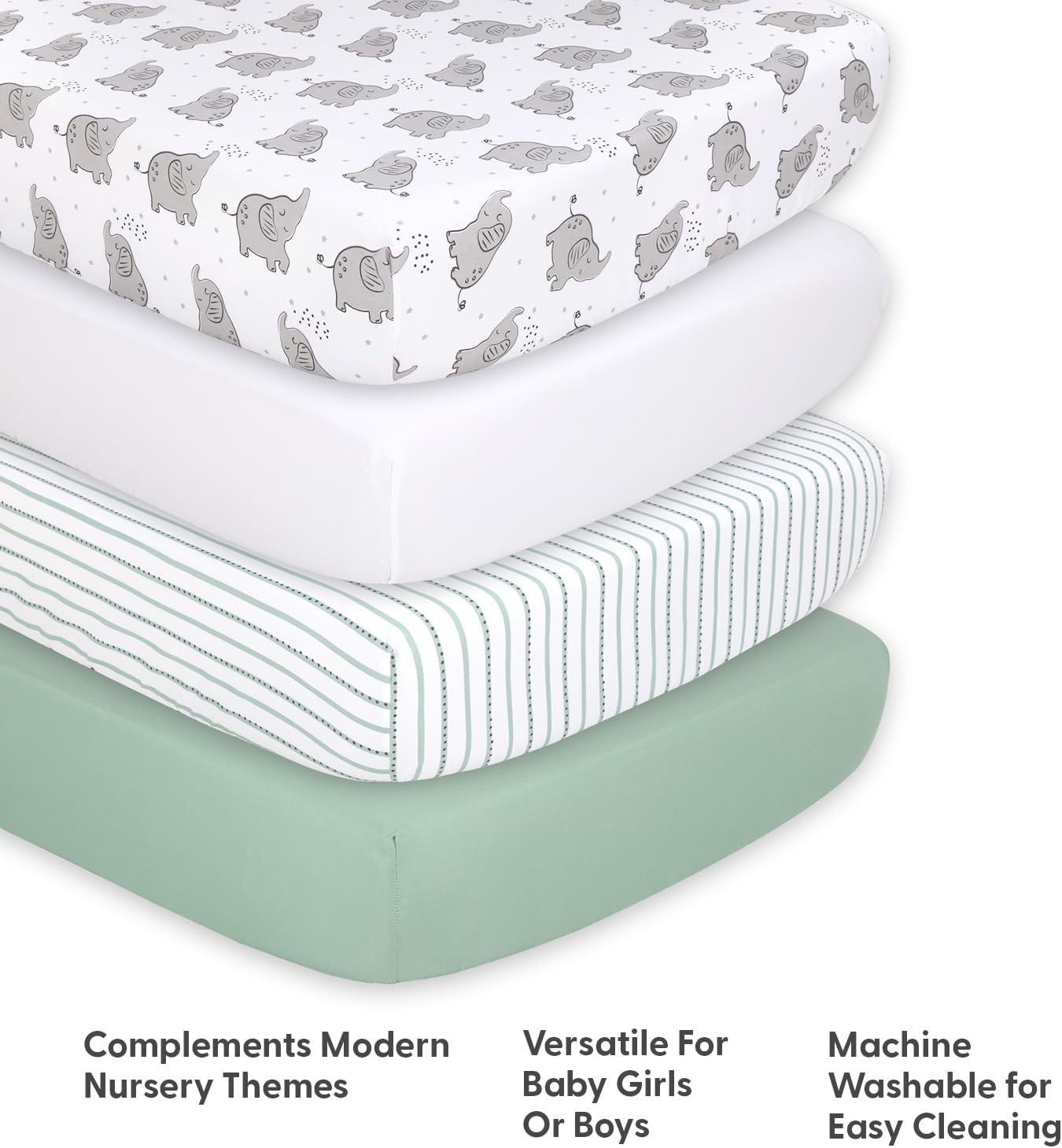 Elephant Print Crib Sheet Set - 4-Pack Baby Bedding