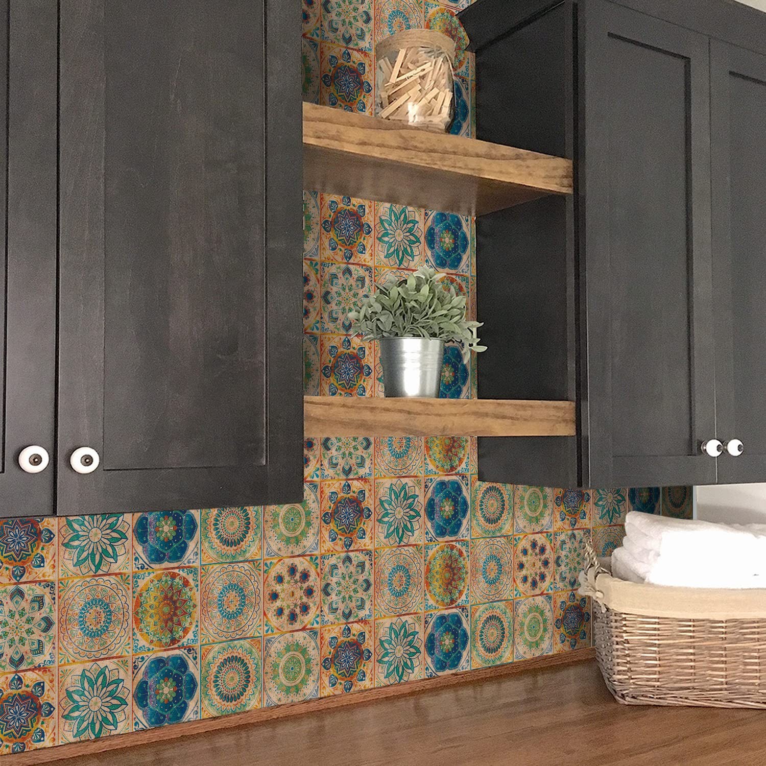 24 Pcs Mandala Style Tile Stickers, Peel and Stick Backsplash Tile Decals for...