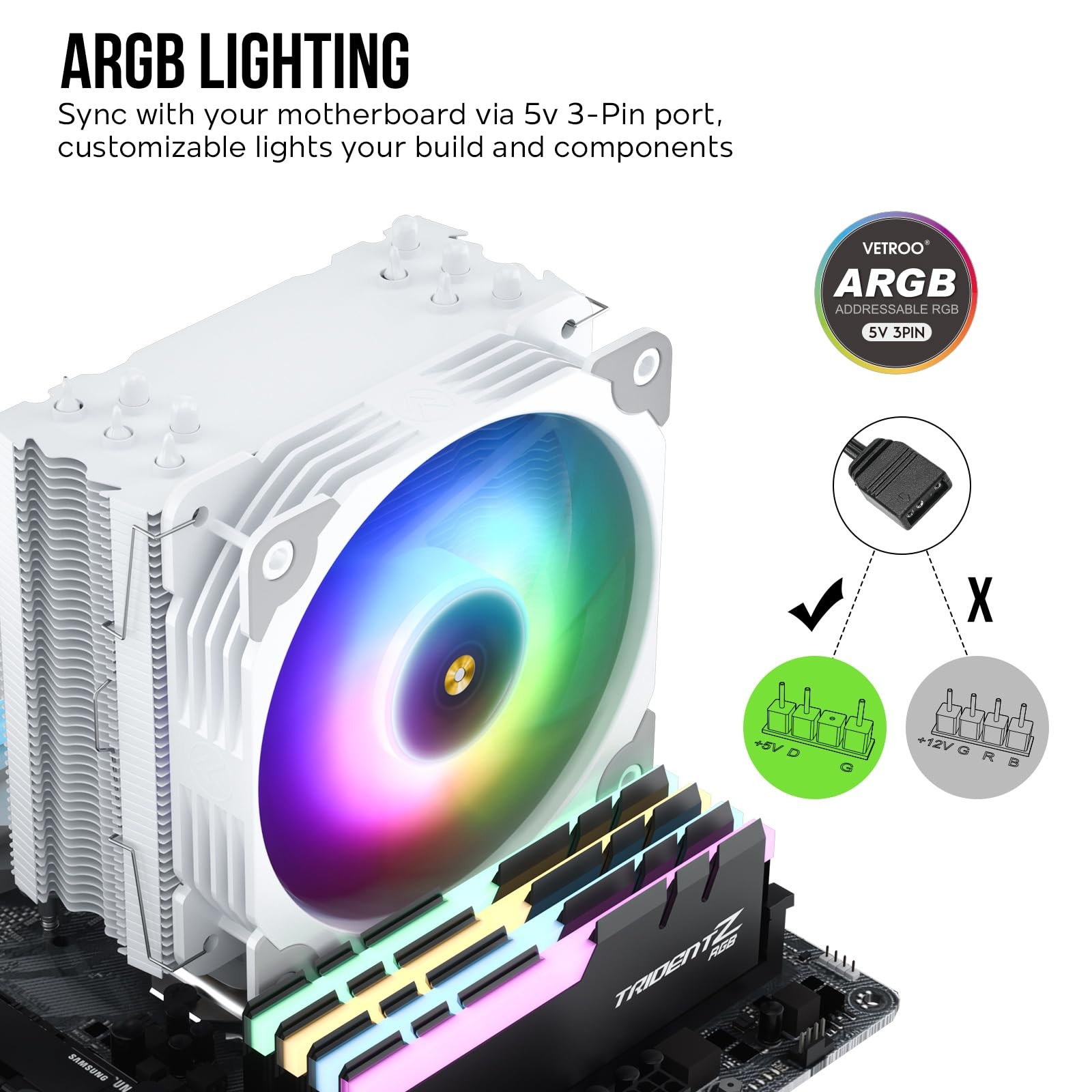 V5 CPU Air Cooler with 5 Heat Pipes 120mm FDB PWM Processor Cooling for Intel...