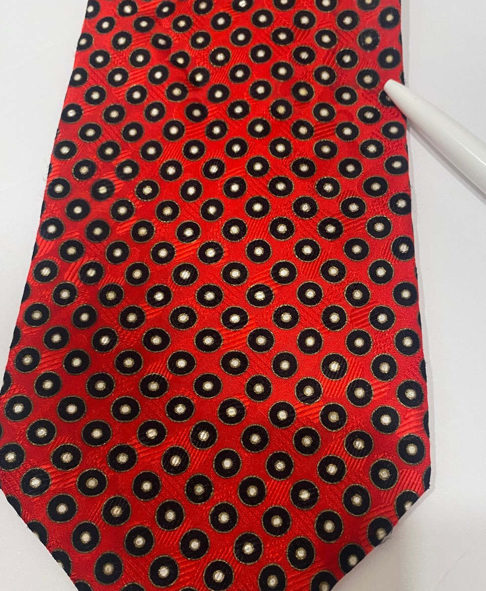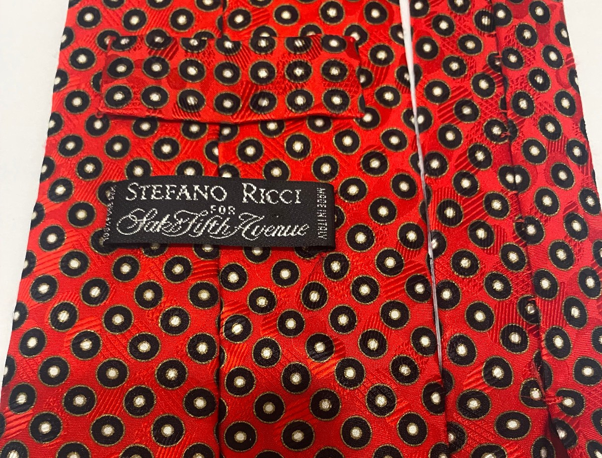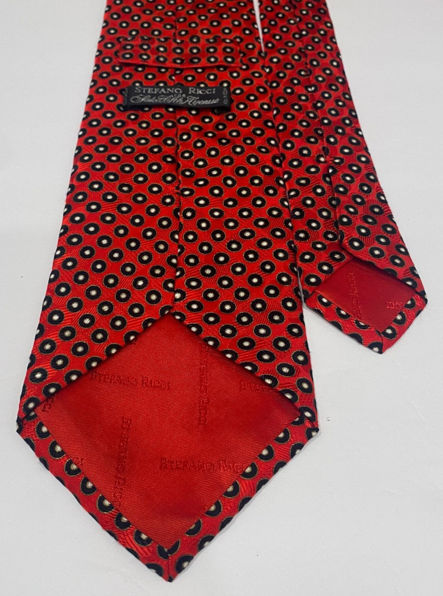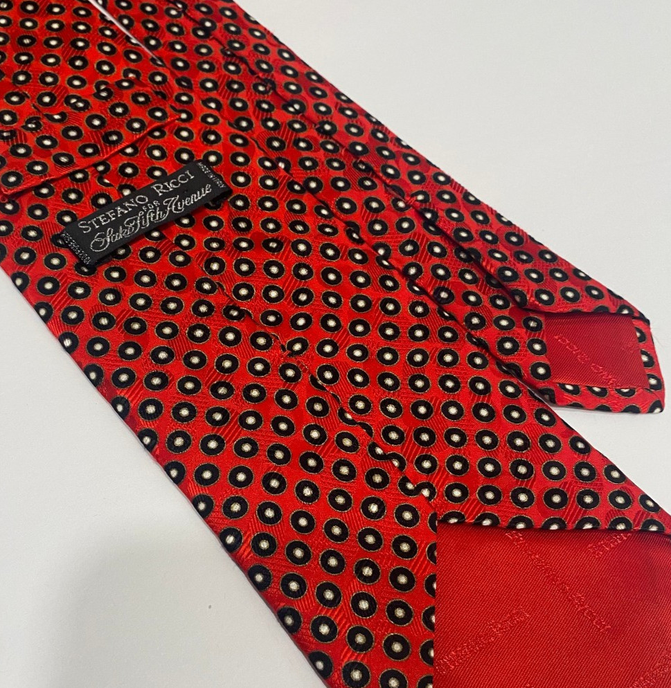 как выглядит STEFANO RICCI 100 Silk Tie Red w/Black Circle Motifs Saks Made in Italy Flaw фото