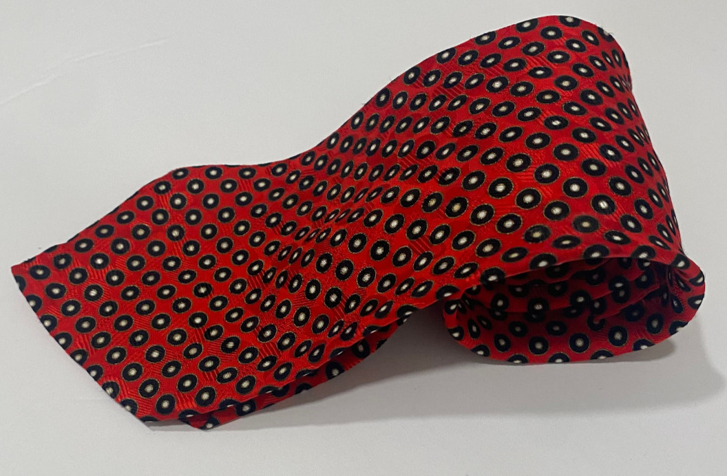 STEFANO RICCI 100 Silk Tie Red w/Black Circle Motifs Saks Made in Italy Flaw