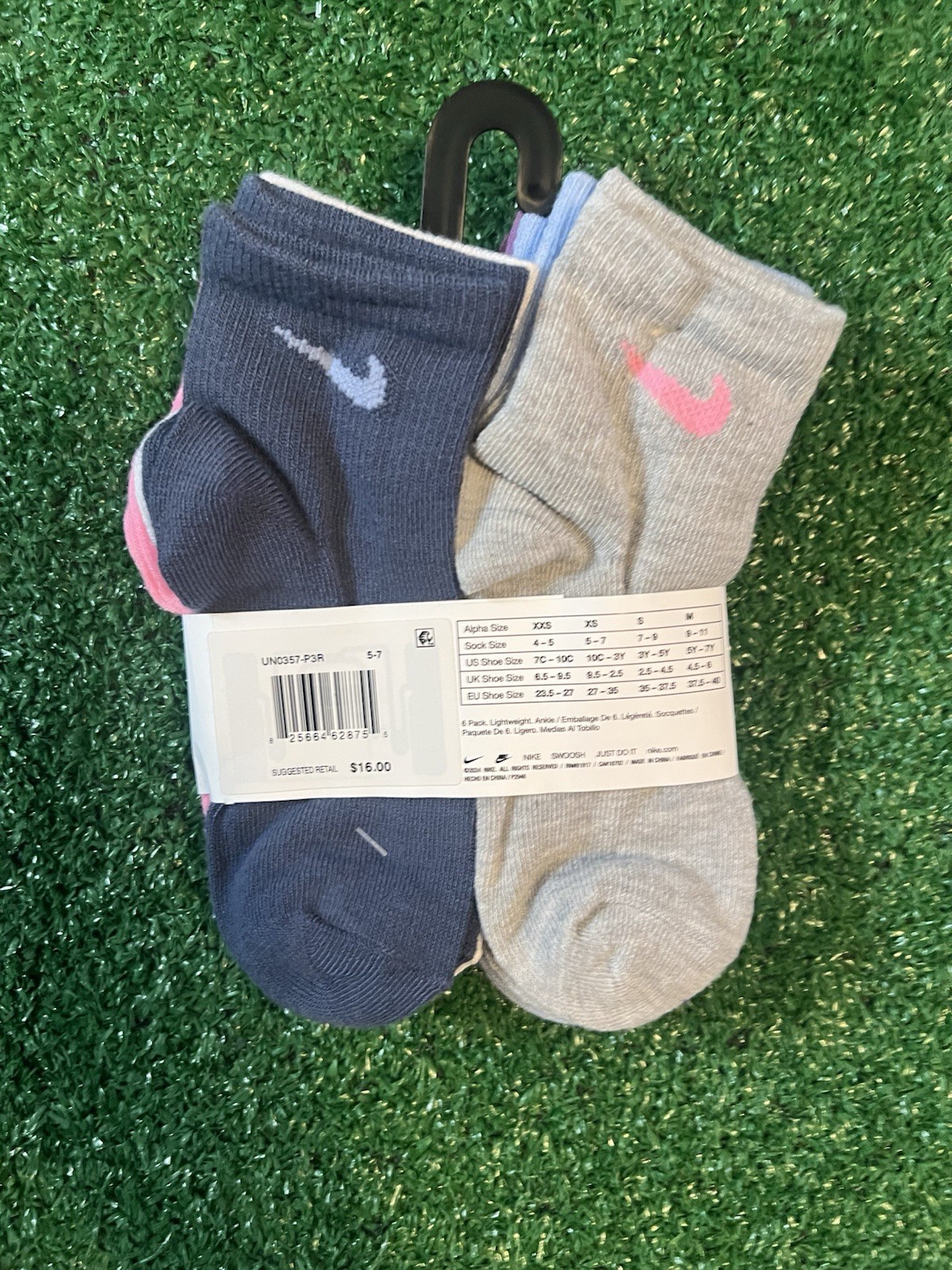 как выглядит 6 Pairs Multi NIKE Youth Cushioned Ankle Socks Size 5-7 Fits US Shoe Size 10C-3Y фото