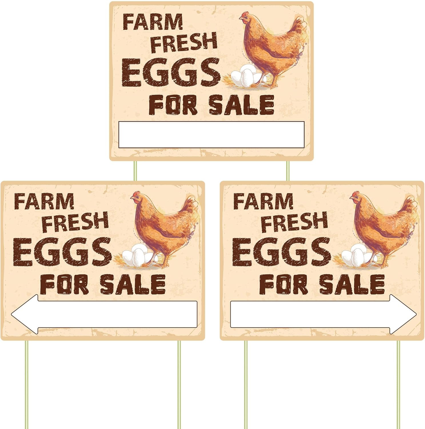 3Pcs Double Sided Farm Fresh Eggs Sign Corrugated Plastic Mark with 6 Stakes for