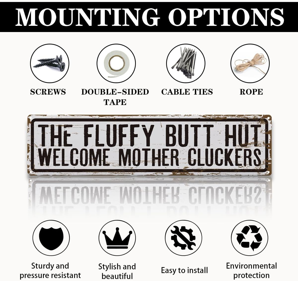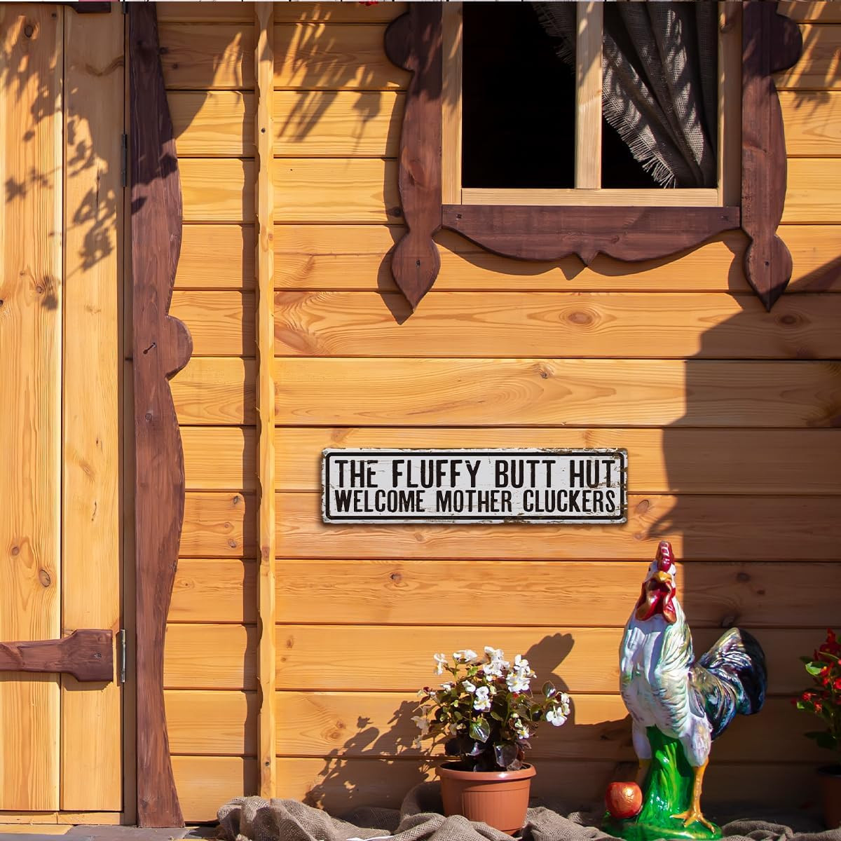 Rustic Farmhouse Style Chicken Coop Sign, Metal Outdoor Chicken House Signs, Flu