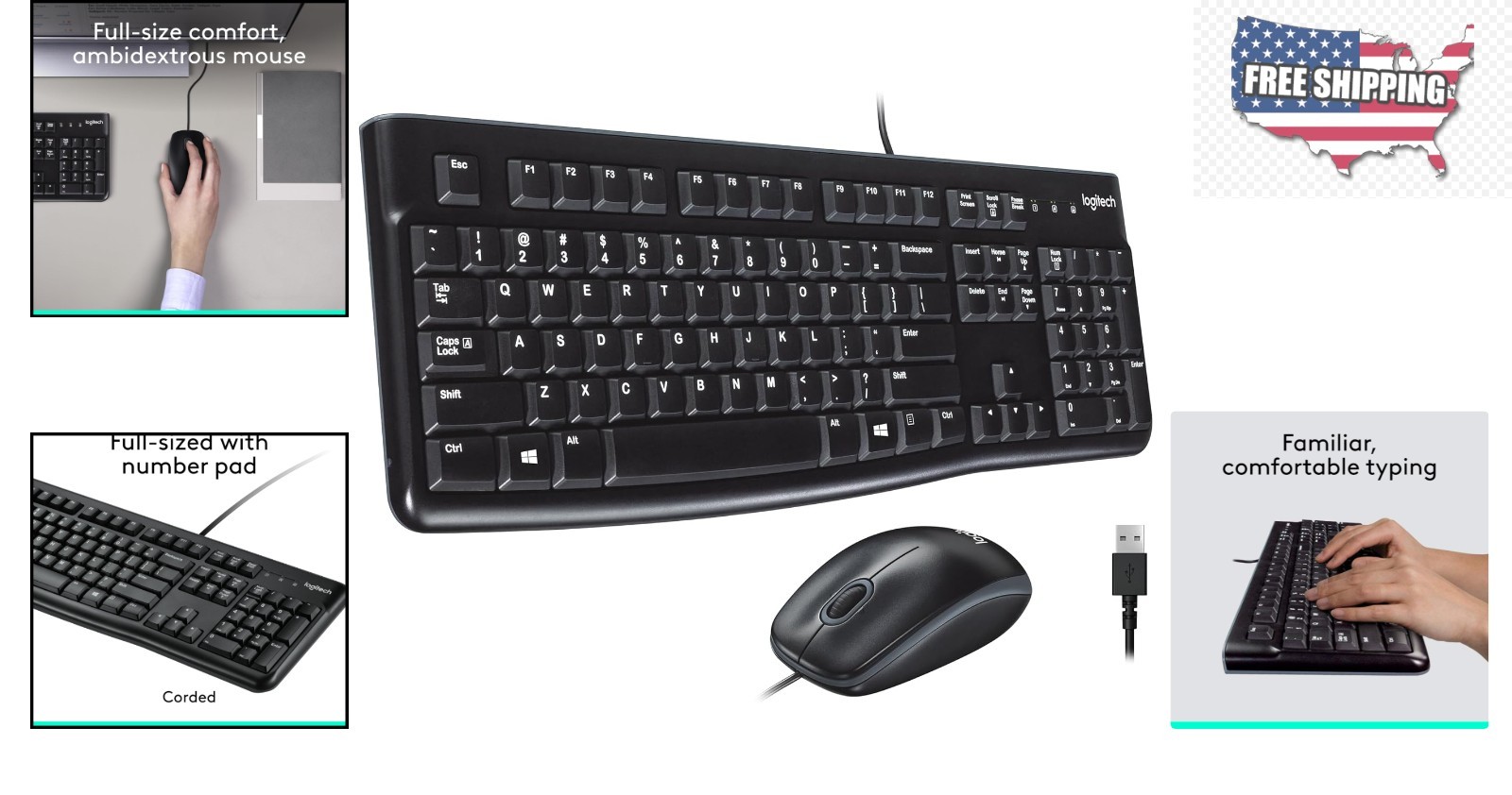 как выглядит MK120 Ergonomic Wired Keyboard and Optical Mouse Combo for Windows - Black фото