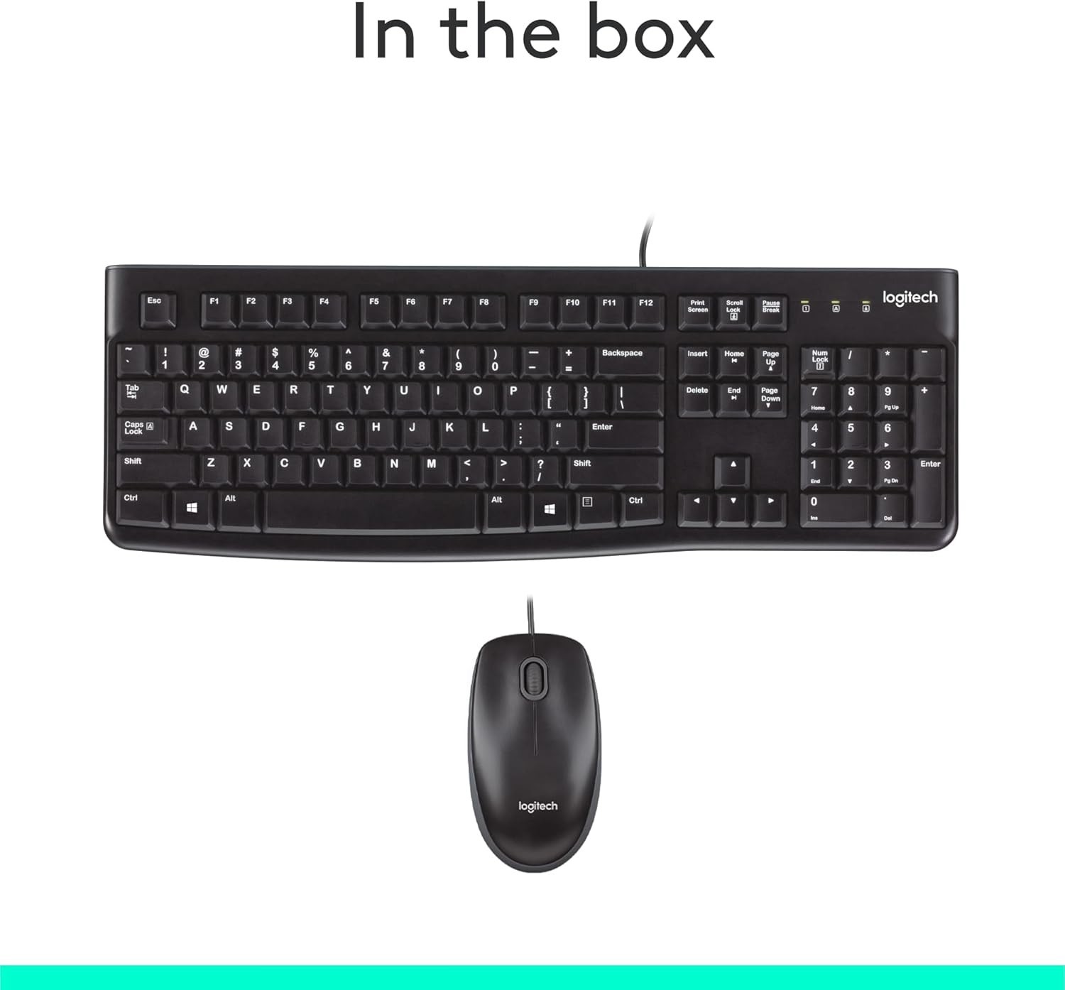 MK120 Ergonomic Wired Keyboard and Optical Mouse Combo for Windows - Black