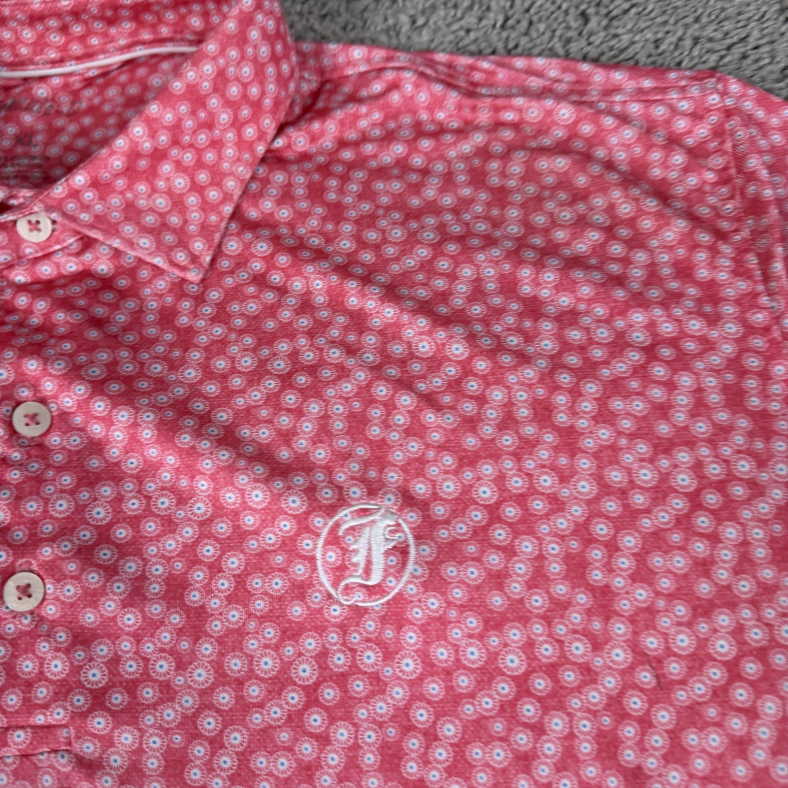 как выглядит FootJoy Polo Shirt Mens XL Pink Floral All Over Print Golf Performance Stretch фото