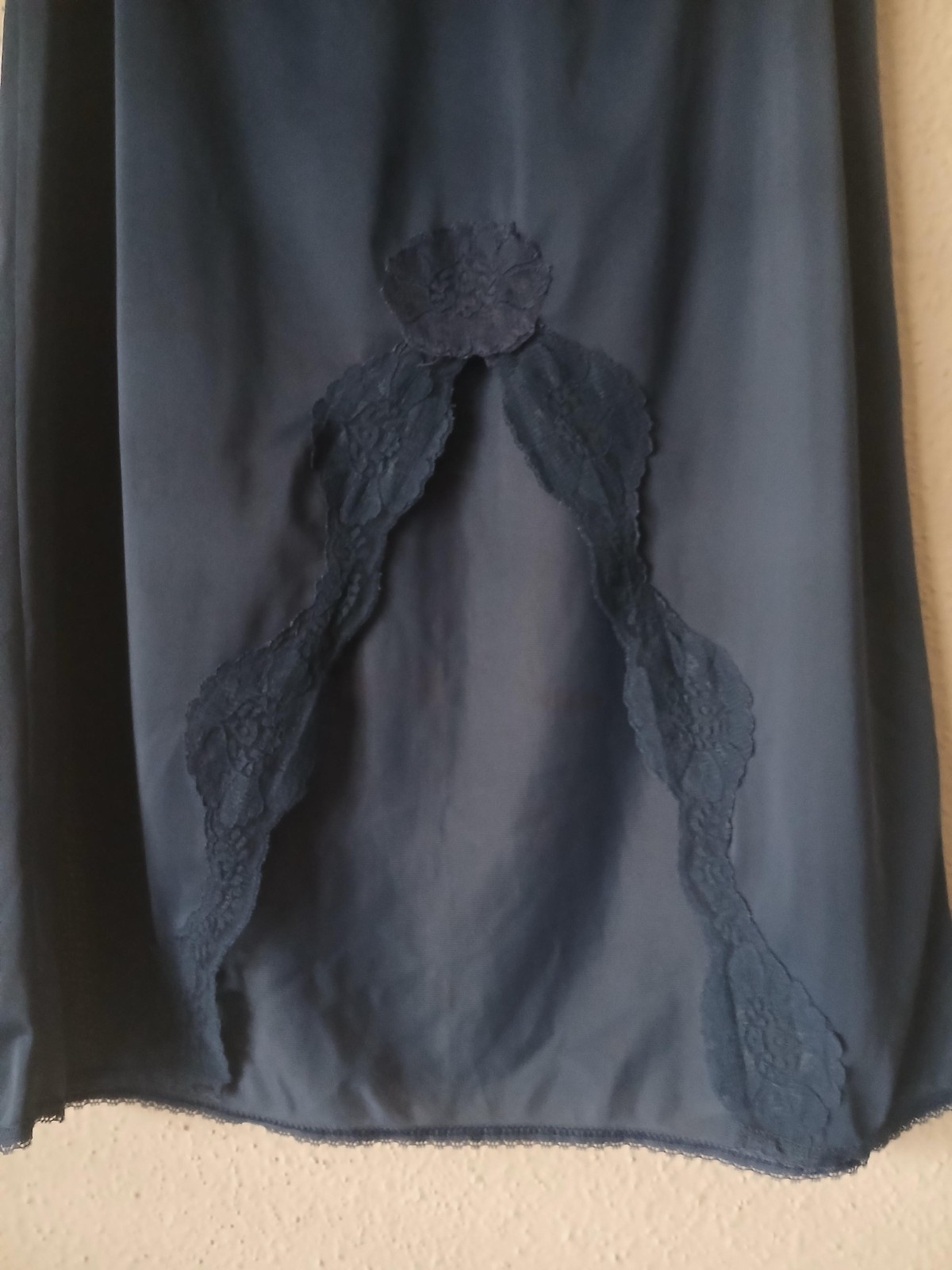 как выглядит Vintage Velrose Half Slip Womens Medium Blue Nylon Lace Front Hem Made USA 80s фото