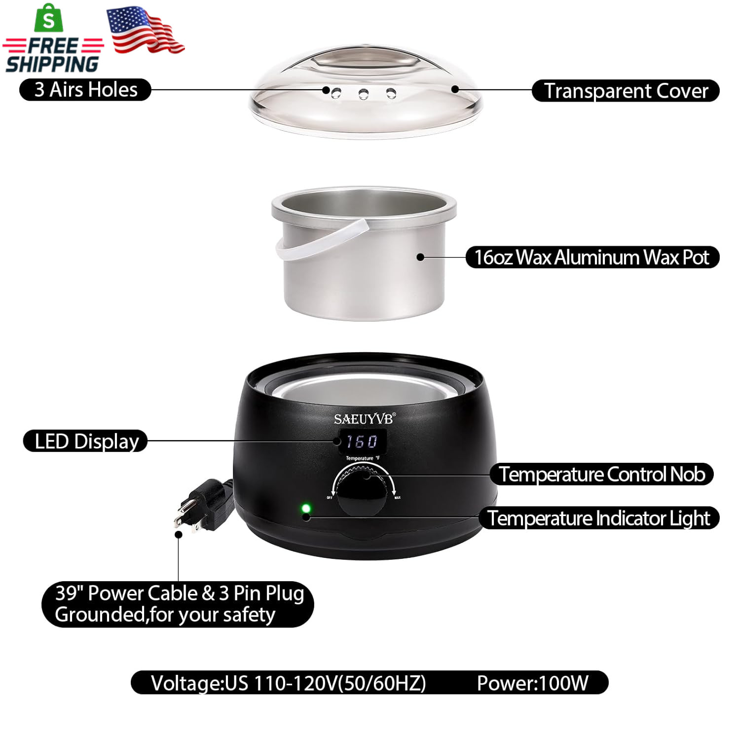 SAEUYVB Professional Digital Wax Warmer with Lid and 16Oz Pot for Hair Removal