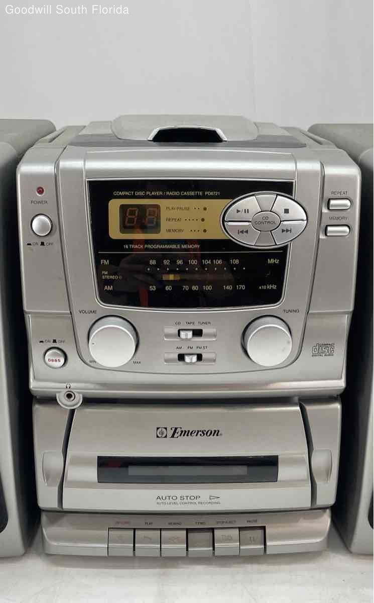 как выглядит Emerson PD6721 Silver Black Portable Stereo Radio CD Player Cassette фото