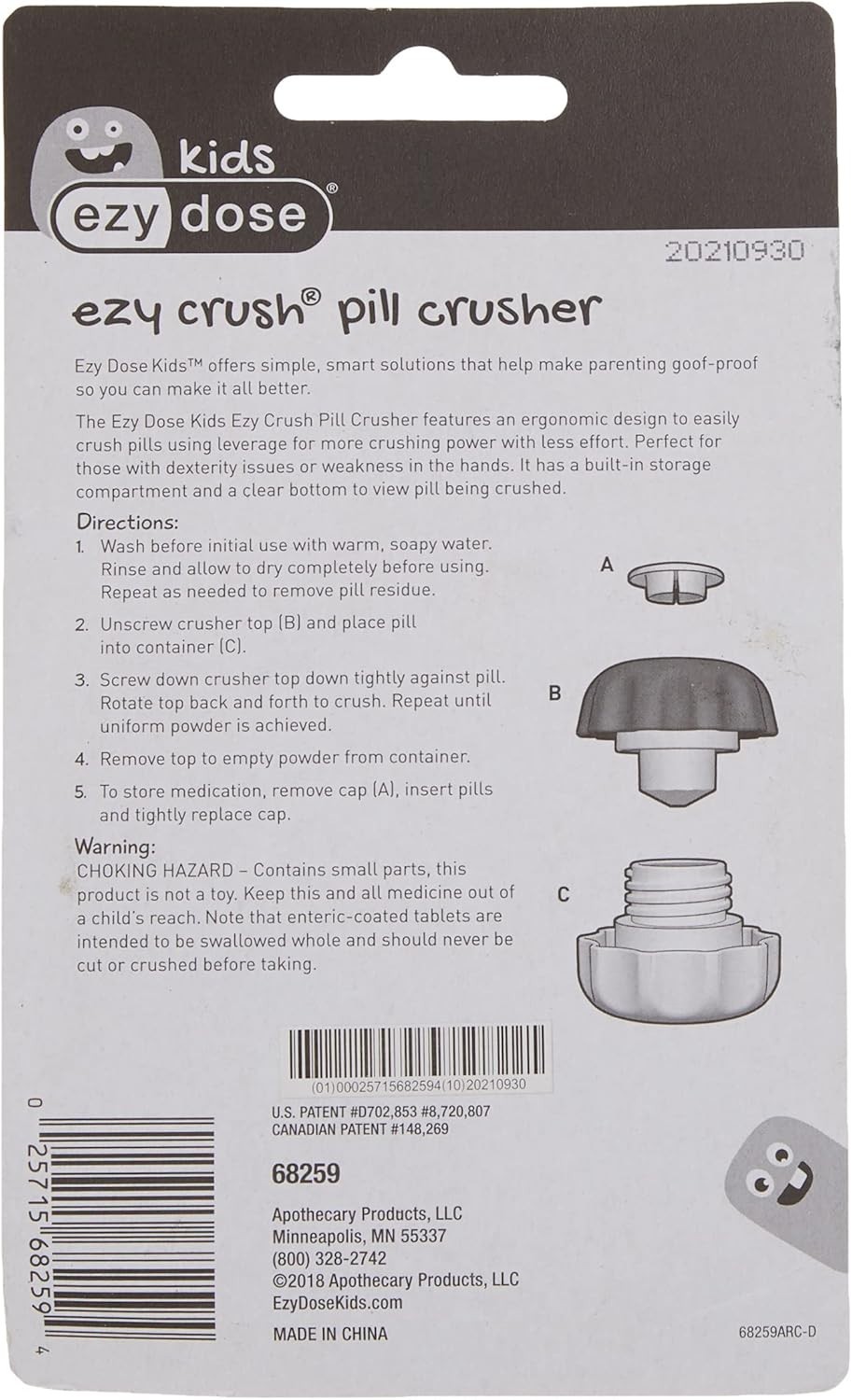 Особенности: Easy to Use, Ergonomic Grip, Durable Construction, Lightweight, Crushes Medication, Multiple Colors