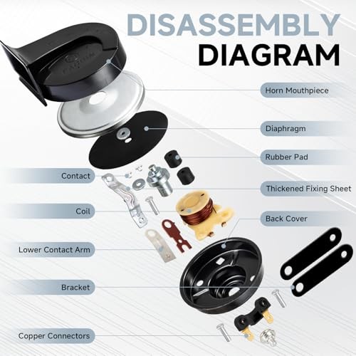12V Car Horn 130dB Waterproof Motorcycle Horn with High/Low Tone for Car Black