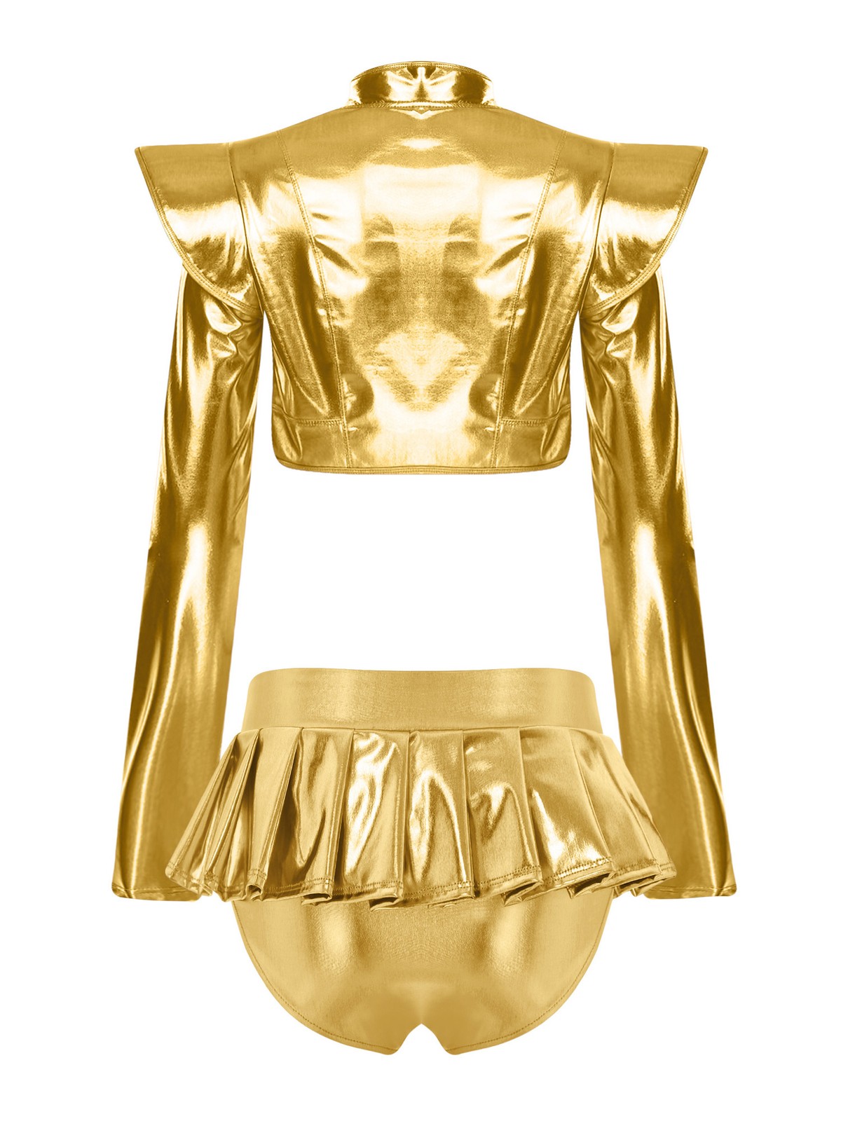 Women Costumes Dancewear Metallic Outfit Carnival Clubwear 2 Pcs Set Cosplay