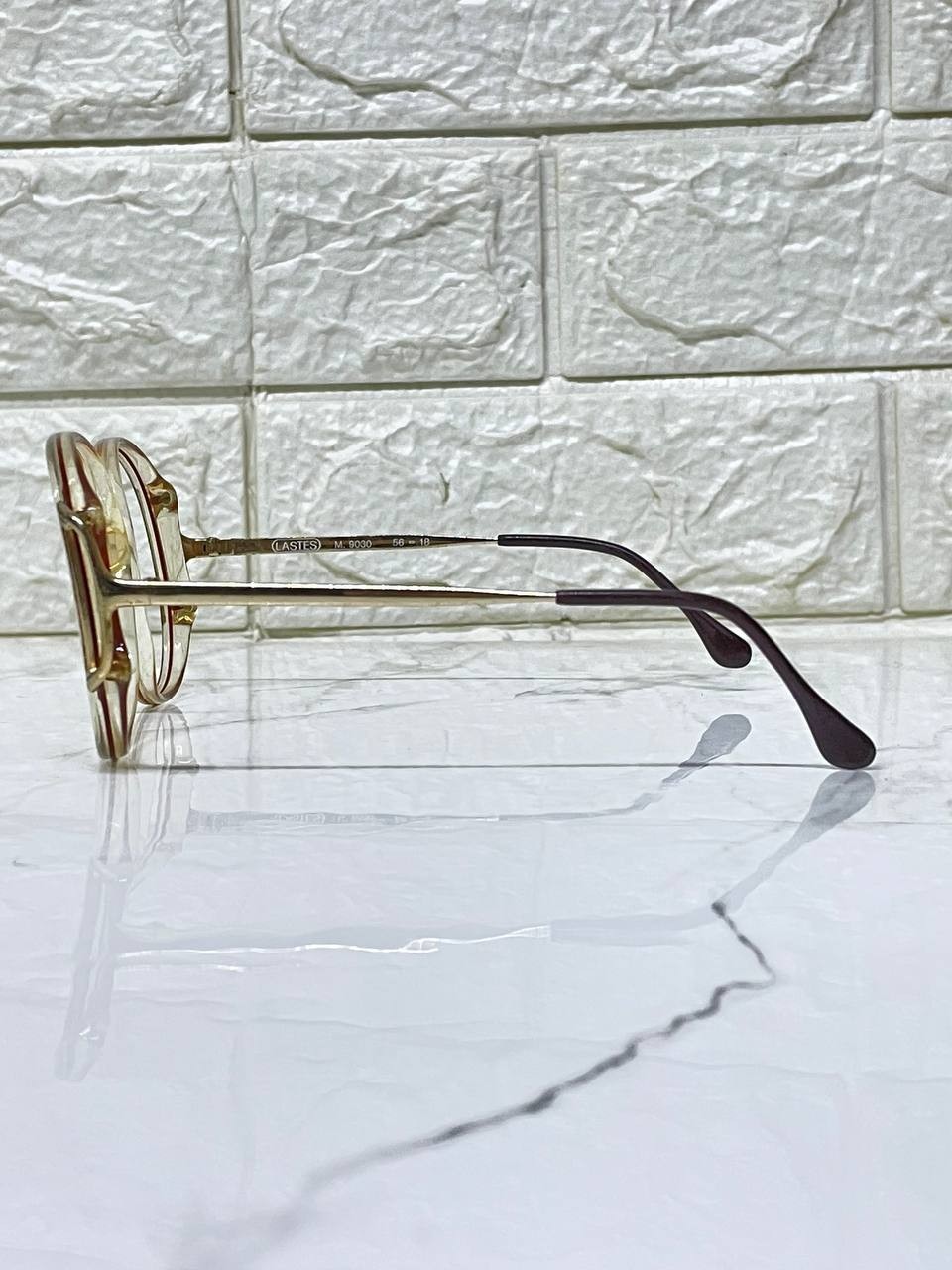 как выглядит Vintage LASTES M9030 Oversized Eyeglasses Frame Italy 56-18 Clear Brown Retro фото