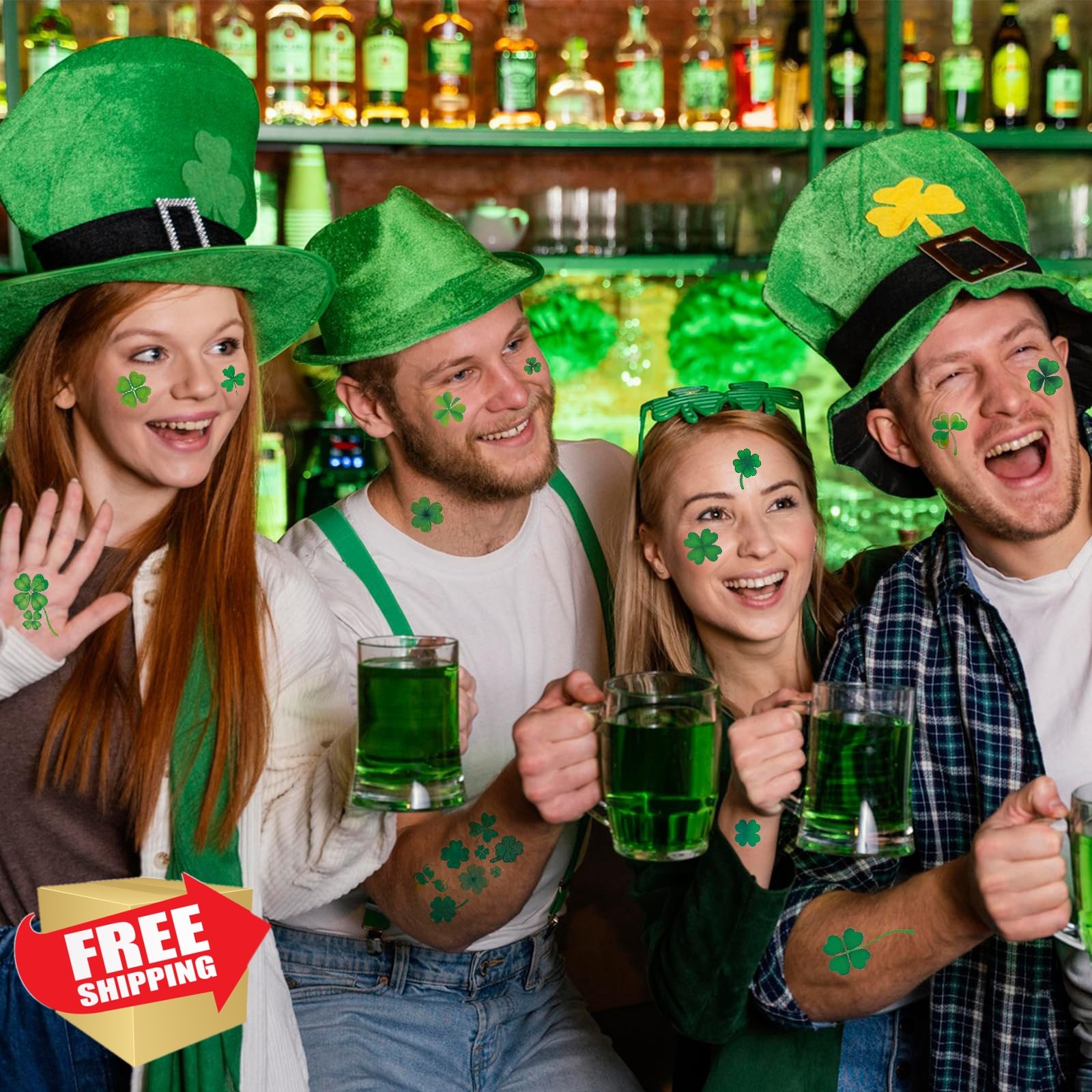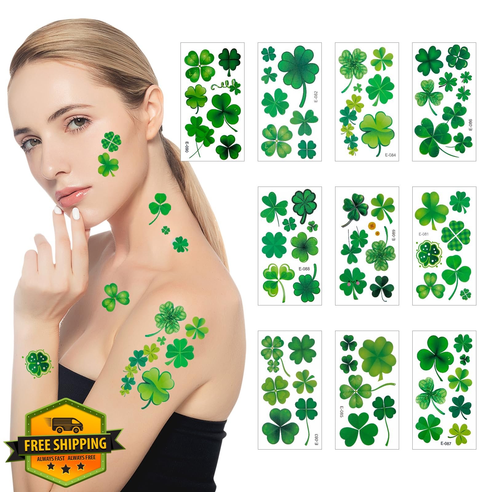 как выглядит St. Patricks Day Shamrock Temporary Tattoos Face Stickers фото