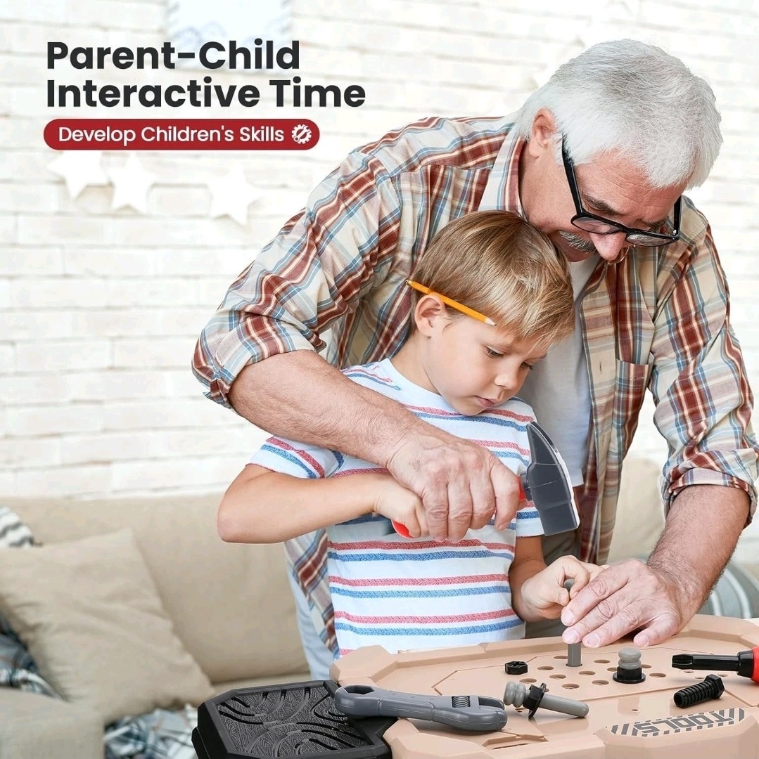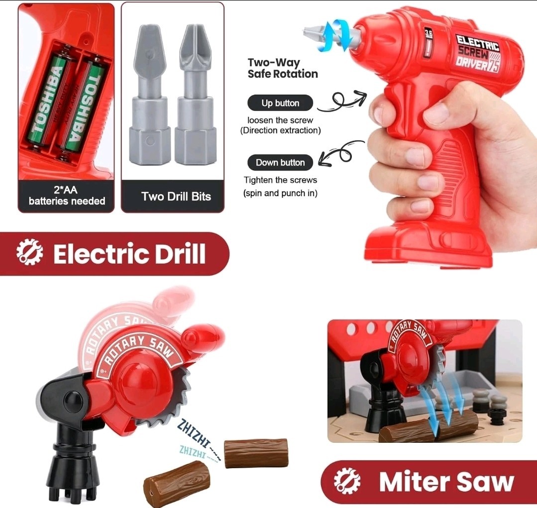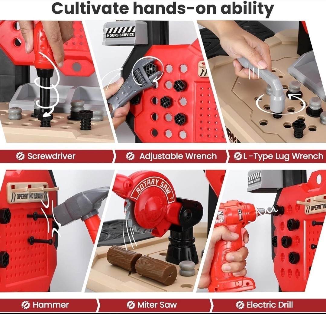 Kids Tool Bench, Toddler Workbench with Electric Drill and 78 Realistic Toy Tool