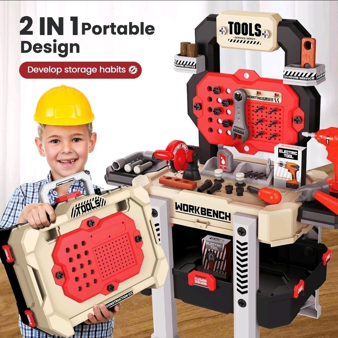 как выглядит Kids Tool Bench, Toddler Workbench with Electric Drill and 78 Realistic Toy Tool фото