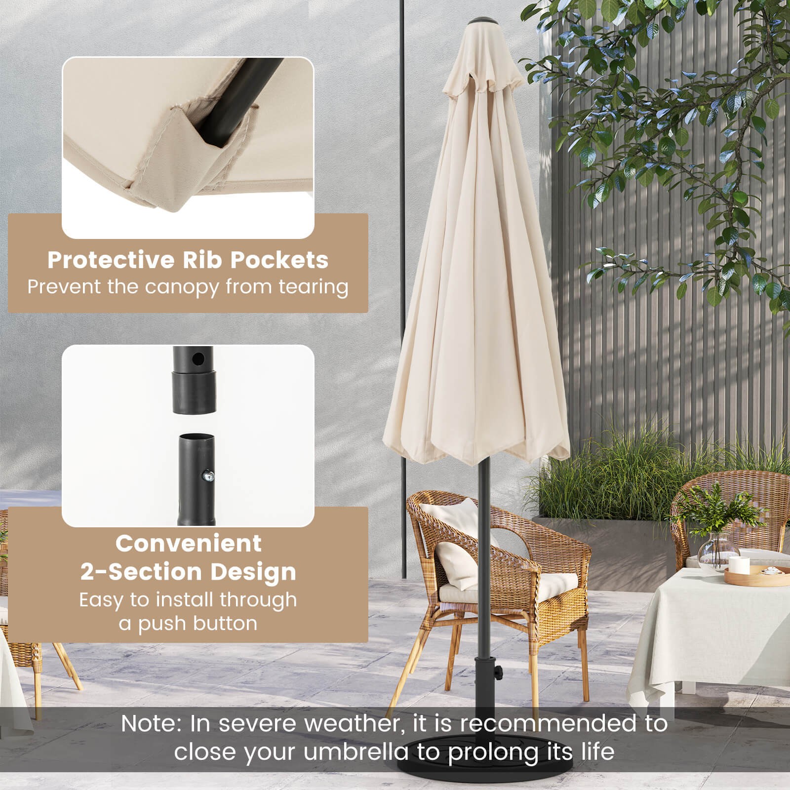 Set Includes: 1 x Patio Umbrella 1 x User’s Manual